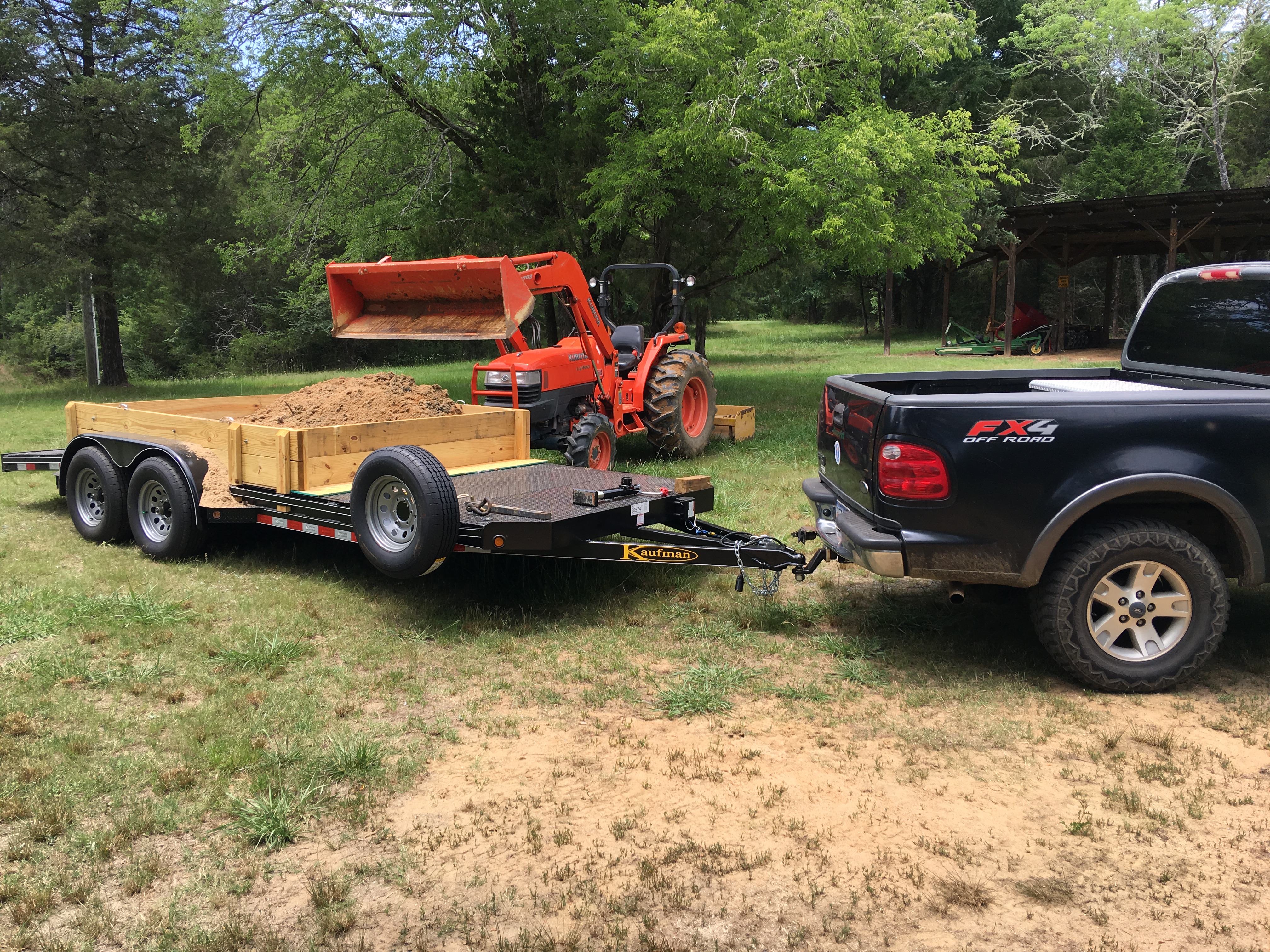 Recently got my 19', 8000 pound, steel deck trailer from Kaufman primarily to haul my track car and my tractor. But I love getting multiple uses from things so I made a box out of 2x6s to fit in the stake pockets and used some cheap OSB to protect the deck and filled it with sand out of my creek and hauled it 50 miles to my home in town to fill behind some rock walls we built in our back yard. Worked like a charm.