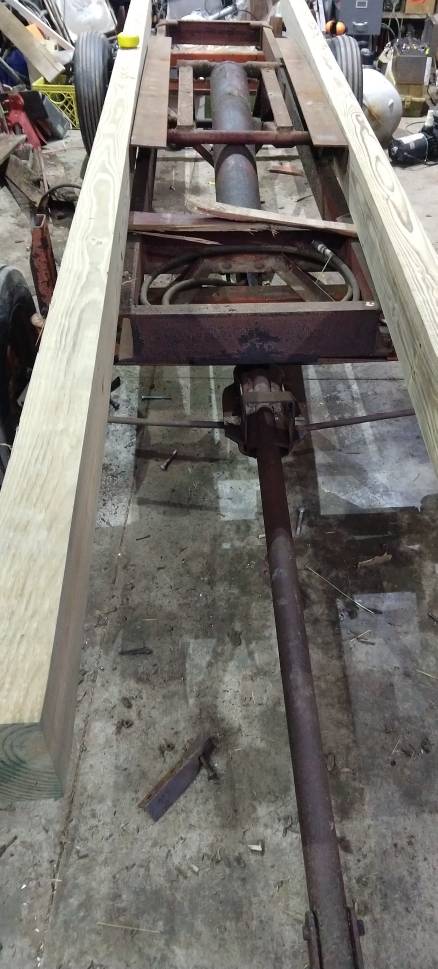 Trying to make it a little shorter so we can load it with the B7500 a little easier, so the new deck will have the main runners (PT 4x6), then decking (rough cut 2x6 beams on their flat sides), then ice and water shield, then the steel deck.
