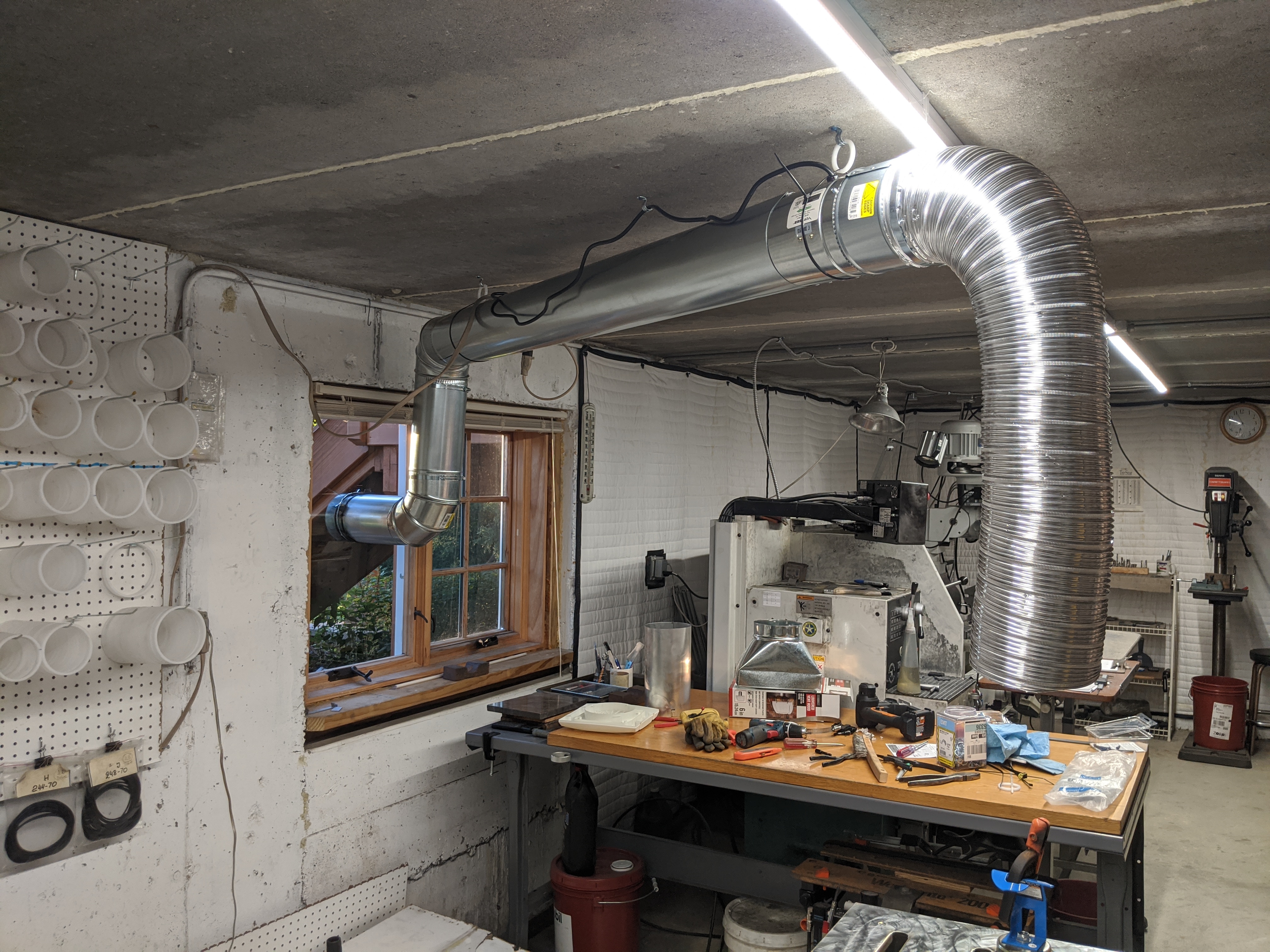 Is something wrong with this site today, or is it just my connection? Strange. Anyways, here's how I routed it out the window. Hard to see I guess, that's a piece of plexiglass with a hole cut in it.