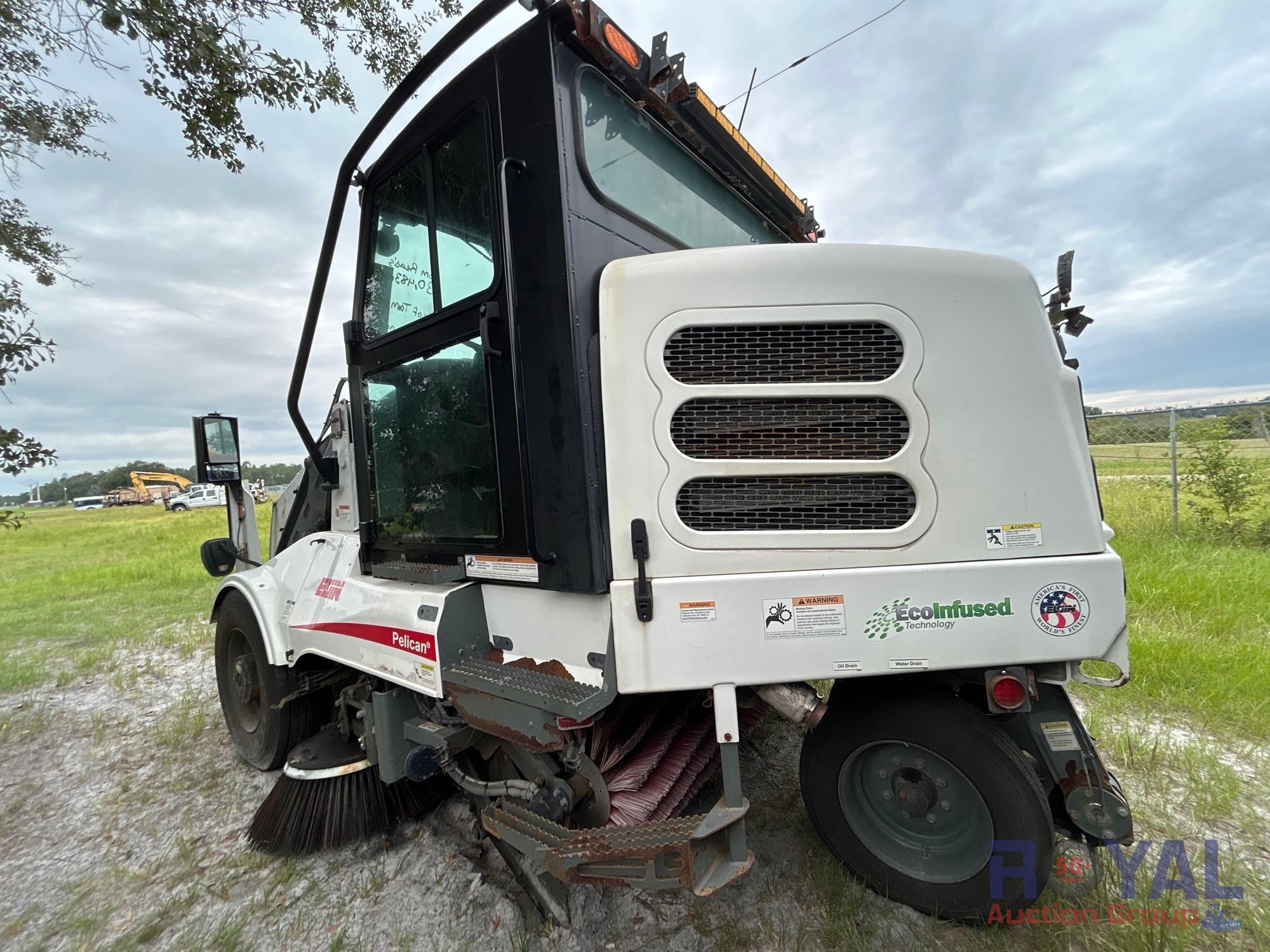 City of Tampa (NP42020-6169), SN: E0151401161, Hours Read: 30,483 hours. Powered by a Turbo Diesel Engine, Hydrostatic Drive. Equipped with dual side gutter brooms, single mid-mounted main broom, 3.6cuyd debris hopper, vacuum system, toggle switch broom controls, joystick hopper controls, adjustable broom down pressure, adjustable throttle, transport mode, AM/FM stereo with CD player, USB and AUX input, climate controls. Runs, does not drive, Limited function check completed at check in.
