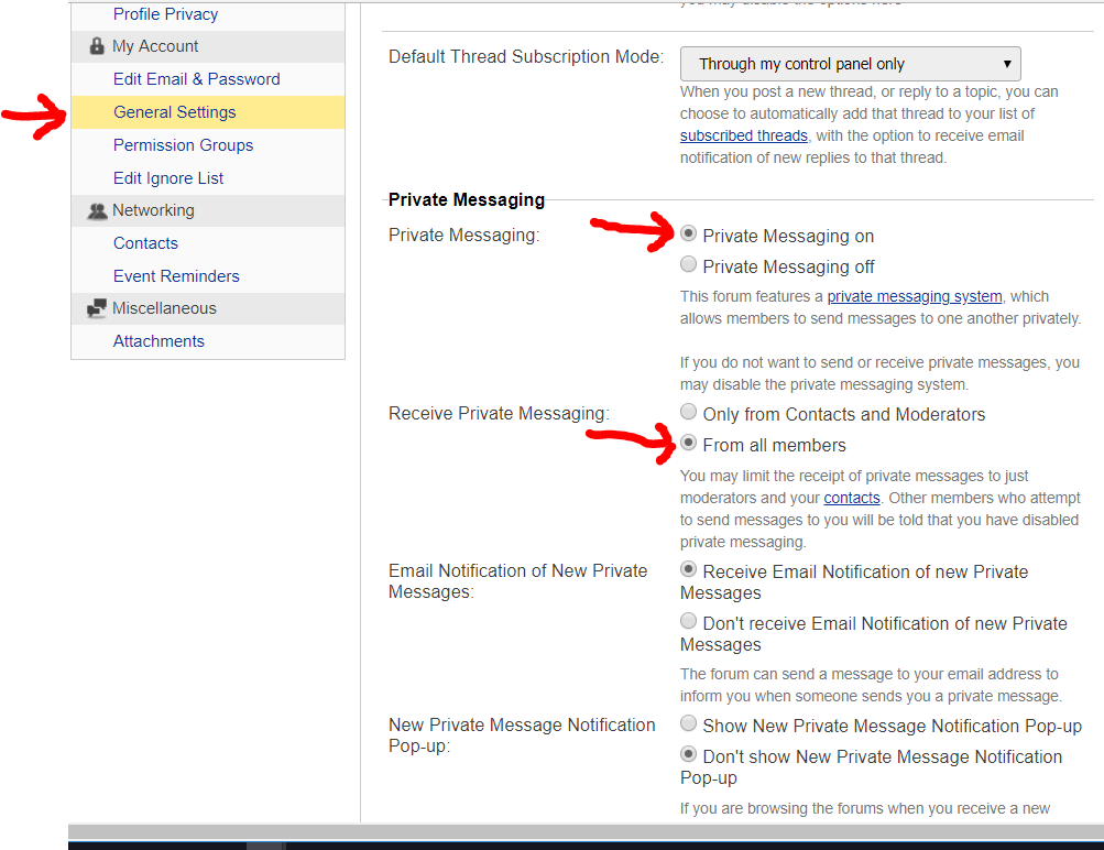 Well I get notices of posted follow ups to subscribed threads but never get PM's.