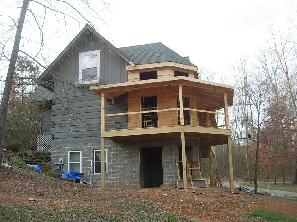 This is not simply a roundish extension. Two of the walls were original house walls and aren't going anywhere. The ceiling (and I'll look to see if I have a picture showing it), anyways, the ceiling has a beam that ties back to my original roof trusses so the horizontal beam in the ceiling is also tied to the house.