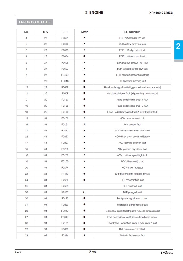 Made it to 22 hours the other day on my new XR4150 when surprisingly the regen light kicked on. I thought it was supposed to go 50 hours between cycles? Anyway, after the regen had been running 5-10 minutes it kicked off and the engine warning light came on and the display began flashing the code F11. I got it to a place out of the way and shut it down. It was running fine the whole time and the temp and oil pressure was good. I could not find a reference to the F11 or any codes in the manual. Does anyone know where to find this info other than call the dealer? Is there a way to reset the code display to see if it comes back on during normal operation?