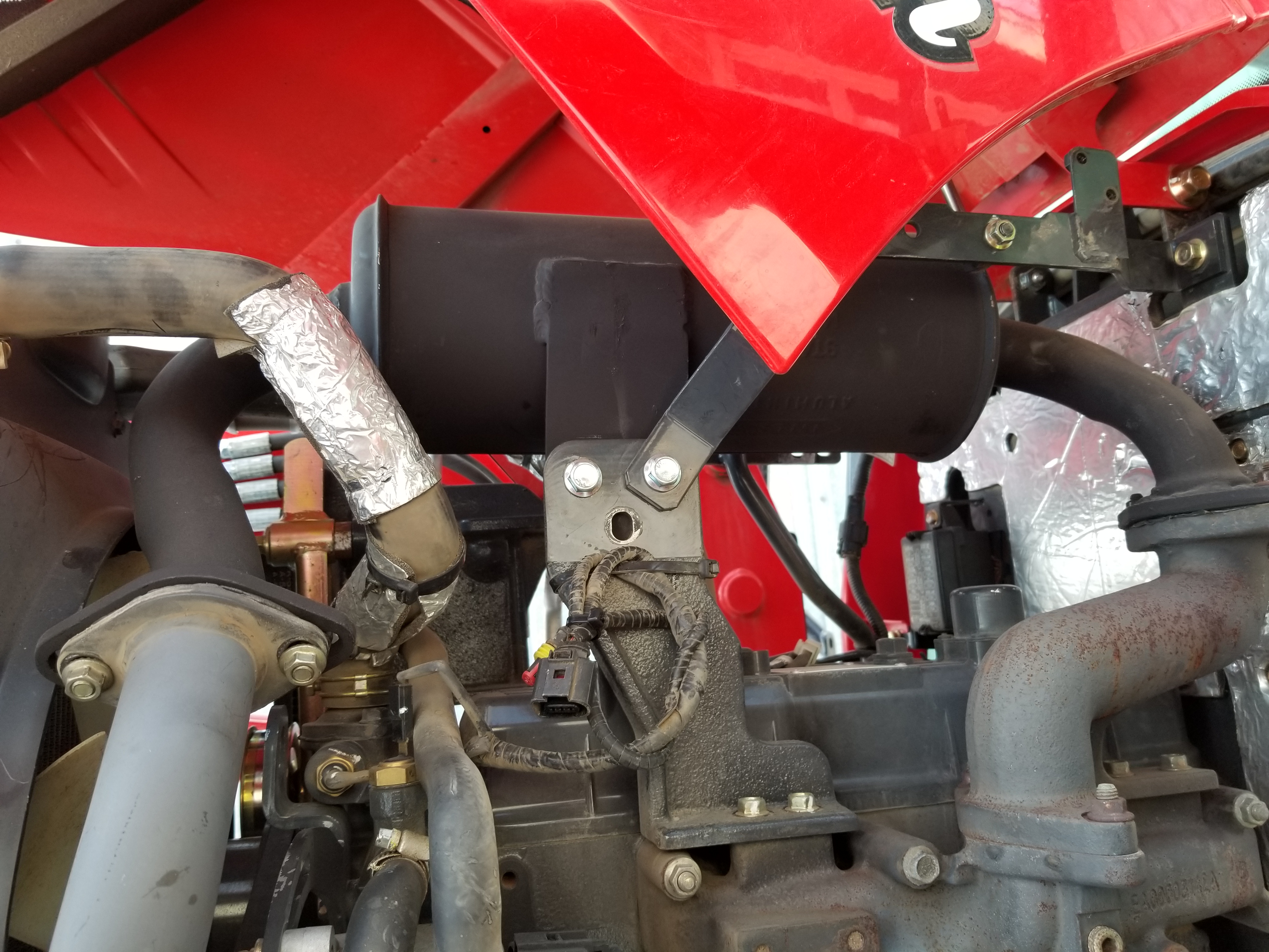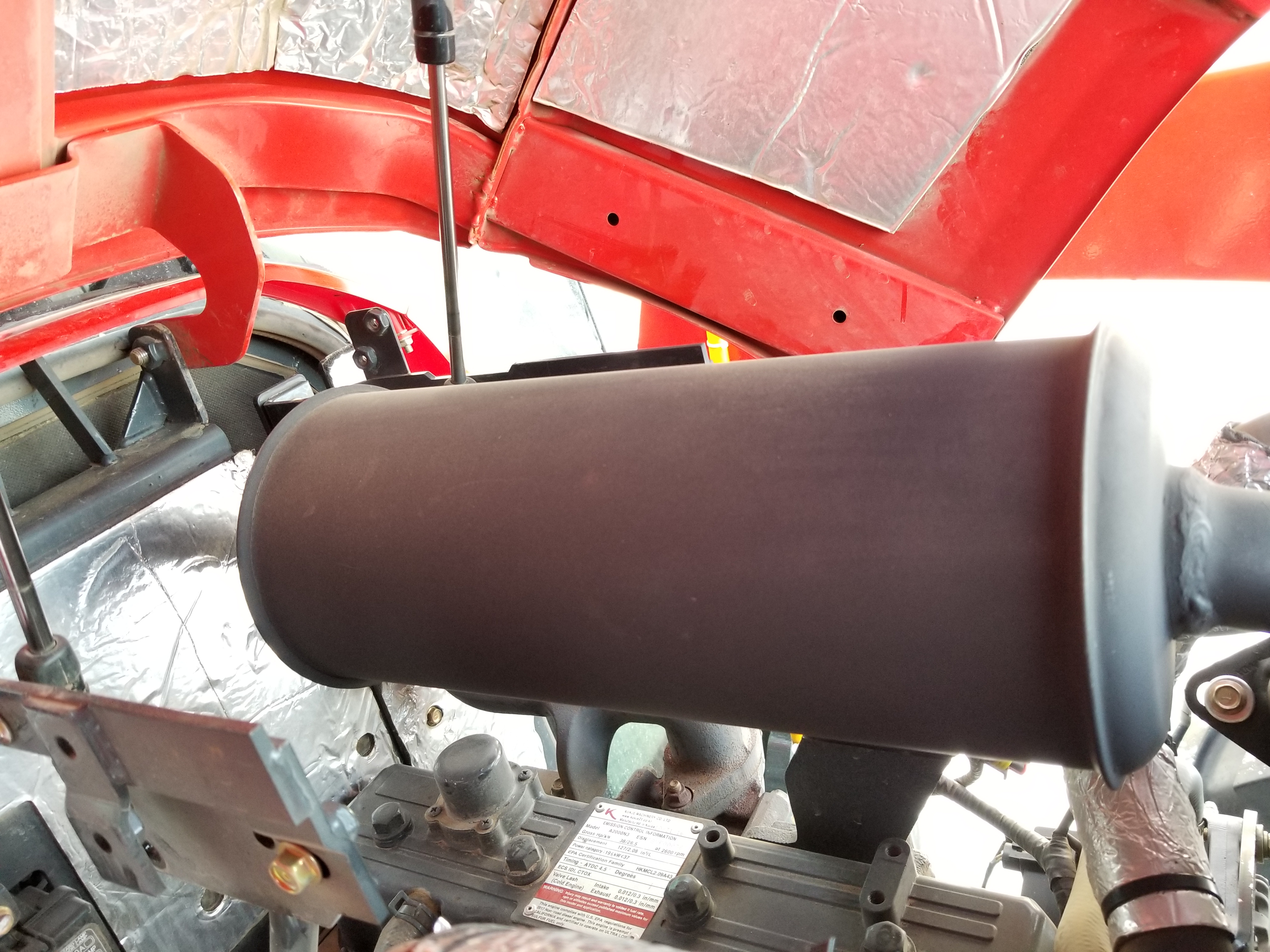 Well it's no secret to the regular visitors to the Branson forum that I've been less than happy with my stock exhaust particle filter. I was having constant issues, mostly in the winter time, with not being able to keep my particle filter from clogging up. Most of this was due to not running it with a load on it in winter time. Normally not an issue in summer time, as I run a 6 ft brush hog, which puts enough load (with the warm weather) to keep it clear. But just putt-putting around in winter pushing snow doesn't work the engine, it just loafs along pushing snow. It's the hydraulics and weight of the tractor that gets the work done in winter, not the engine power.