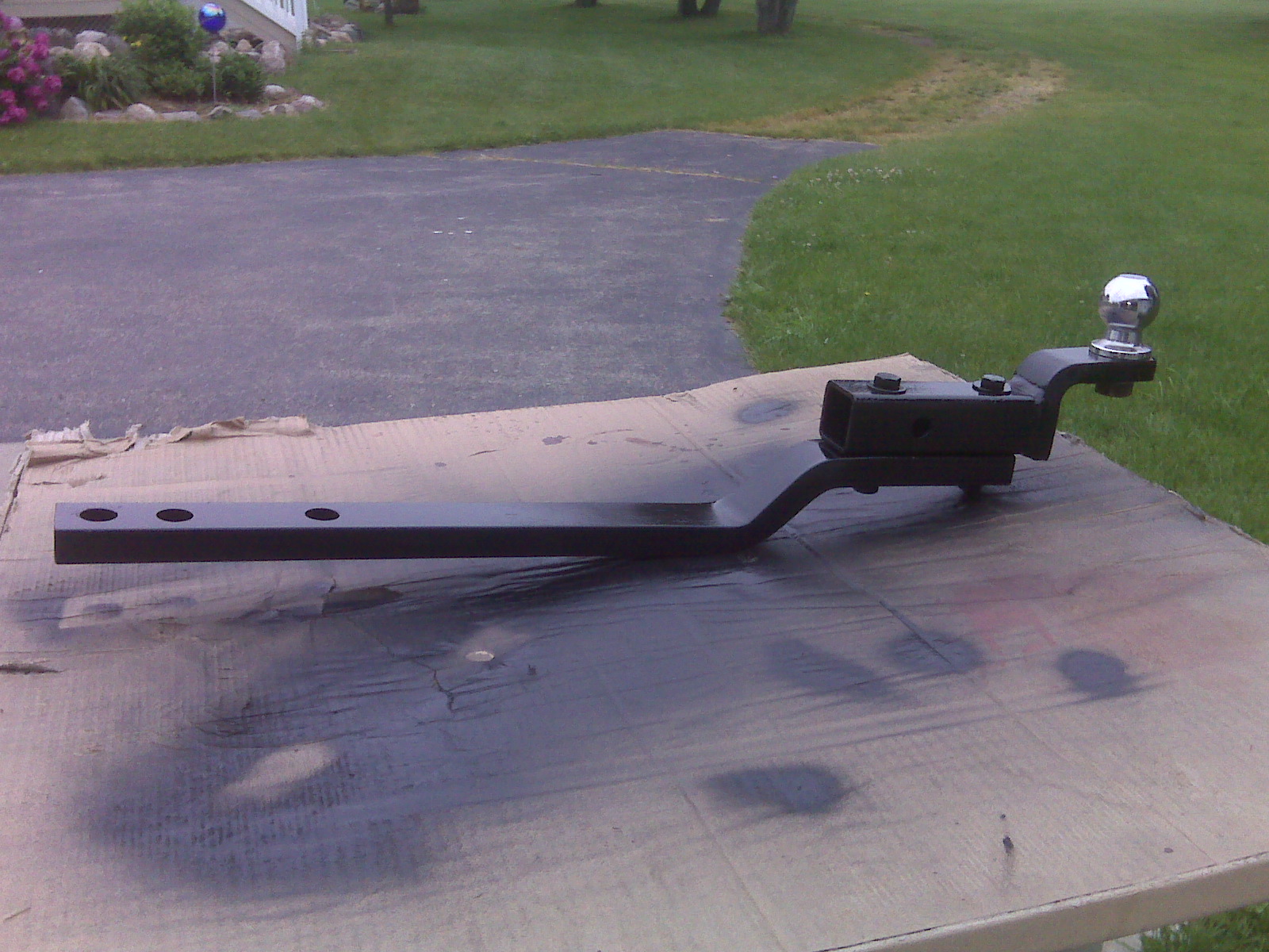 Last year, I purchased a used, curved drawbar at a garage sale for $5. I drilled a pair of half inch holes through a 2-inch receiver hitch bar I had lying around that matched up with the holes in the end of the drawbar, then sanded, primed, and painted both sections and bolted them together. I don't have a welder, and to me, a cheapskate at heart, the grade 5 bolts I already had would work just as well as paying someone to weld things for me.