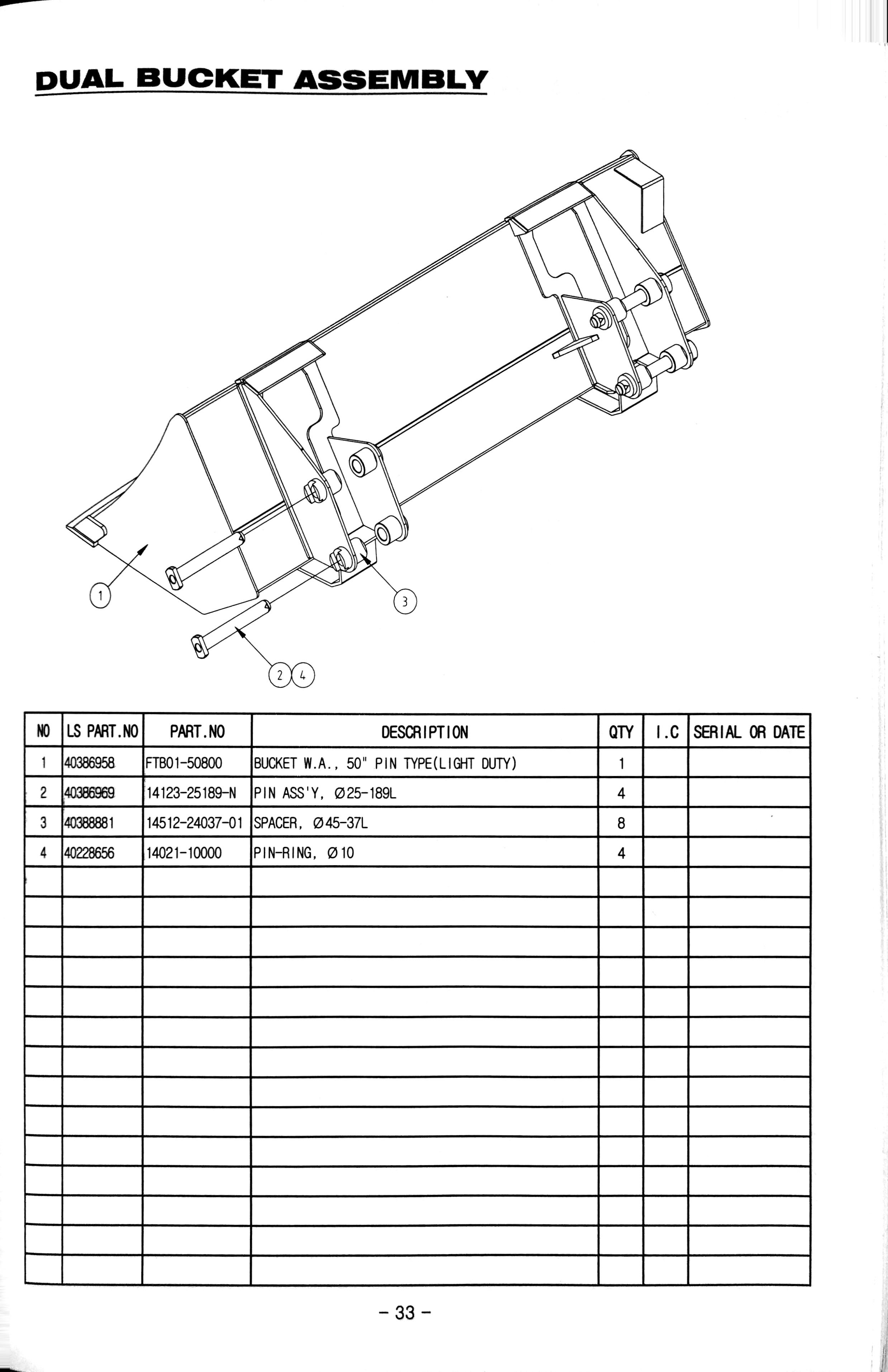 Bucket W.A., 50" Pin type (Light Duty): 40386958