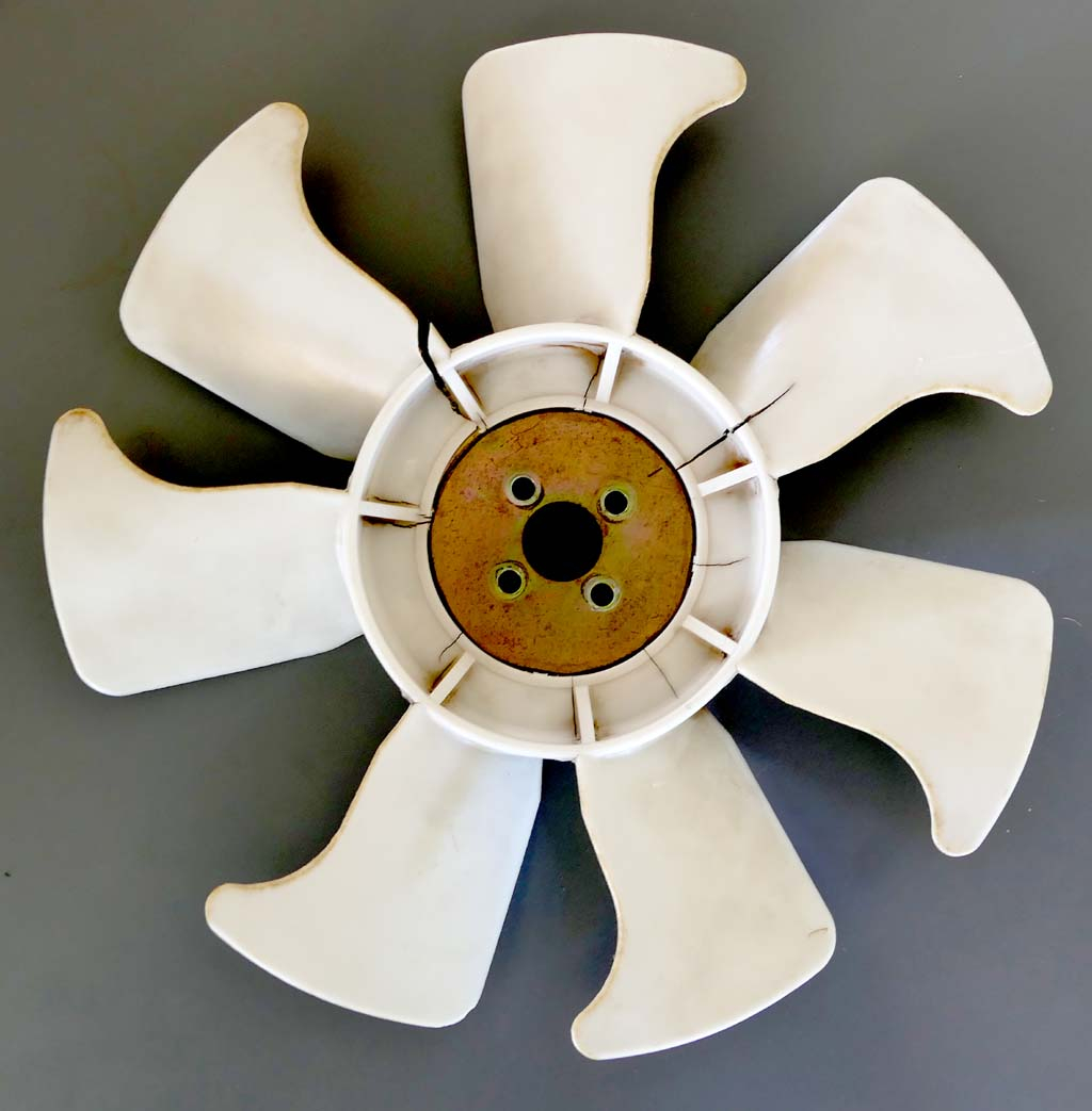 As far as fan material they are molded out of nylon 6/6 common material. However nylon does not like adverse dry no humidity conditions. It will stress crack leading to failure. Need to ask the question we’re there any concentrated white spots where the fan cracked. This would be defined stress point. Thanks for sharing your opinion and longevity of your water pump. I was also told to inspect water pump yearly which meant to relieve pressure from belt. Then grab the fan and see if it wobble or move side to side. Dealer stated clearly once the water pump goes the engine temp can rise quickly under load and risk taking a head gasket if not caught quickly. I can only speak for my first hand experience, I caught my pump failing.