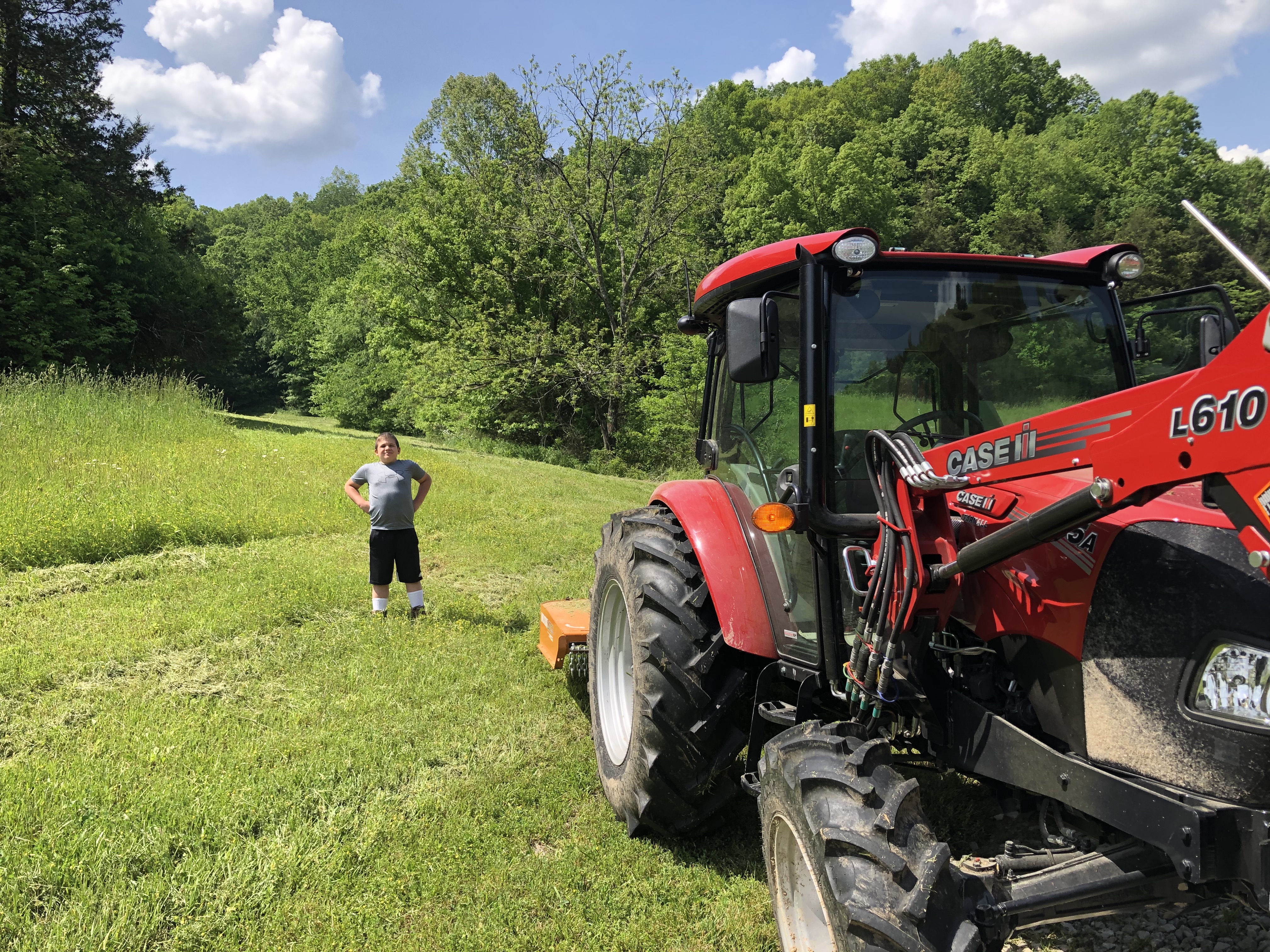 The power shuttle is awesome. Most of my tractor use in the past has been traditional transmissions, along with some HST in compacts, but this is my favorite, at least for this use. Very smooth and perfectly placed controls. I used mid range 1 and 2 most of the time. I could have mowed with a faster ground speed, but this was the first time I've mowed this place, so I wanted to take it slow. Plus the grass (mostly fescue) was about 3' tall.