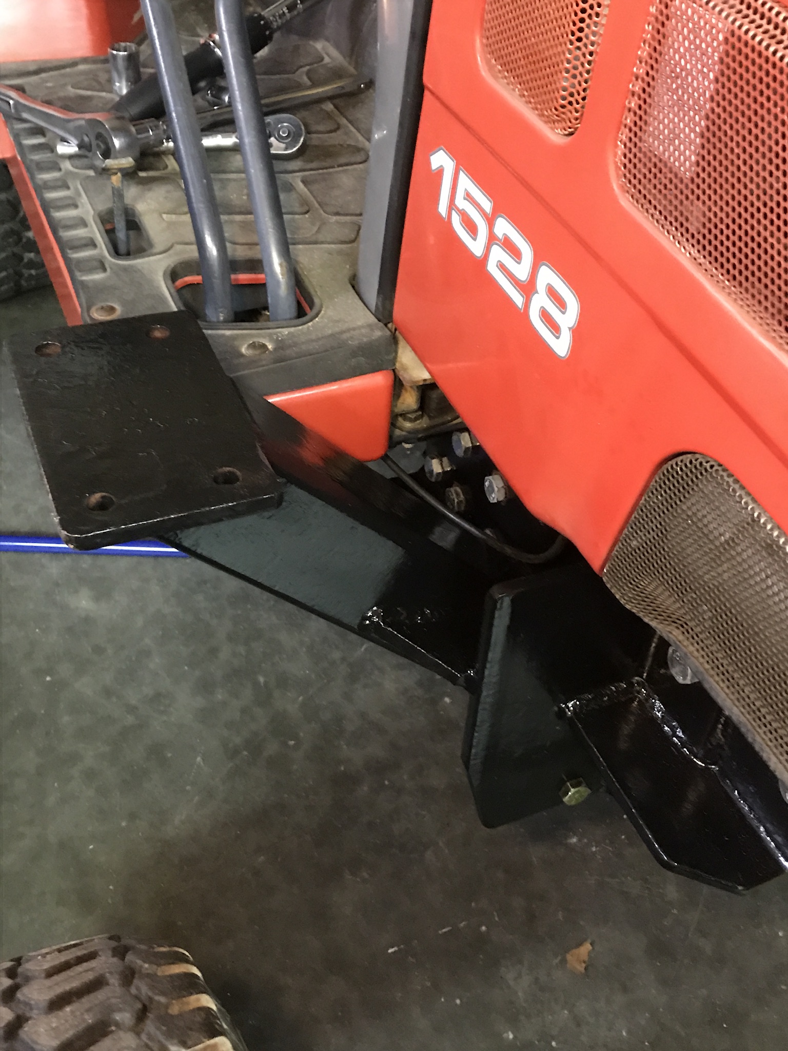 Dabwood40, can't tell from the pictures, but you need to for sure have "axle bars". One on each side of your underbelly mount going to the rear axle. Might be 2x2x 1/4 square tubing for your size tractor. They put the weight on the real axle and take stress off of the middle of the tractor.