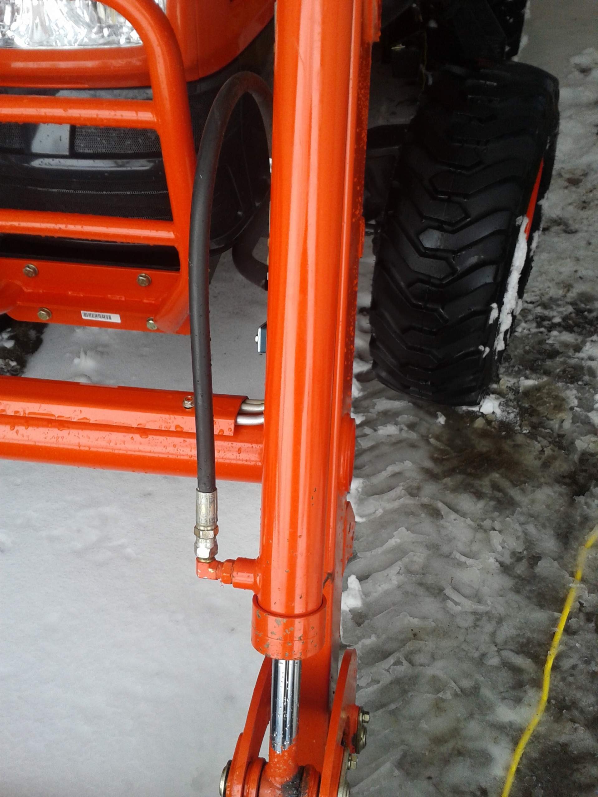 Yesterday was the first time I noticed the paint peeling off the dump cylinders of the FEL. It looks like a bunch of stone chips but it's obviously not. One side is much worse than the other, but it's starting on both sides. I poked around the rest of the tractor and don't see any other areas for concern, but I'm not going to be impressed if this continues to spread.