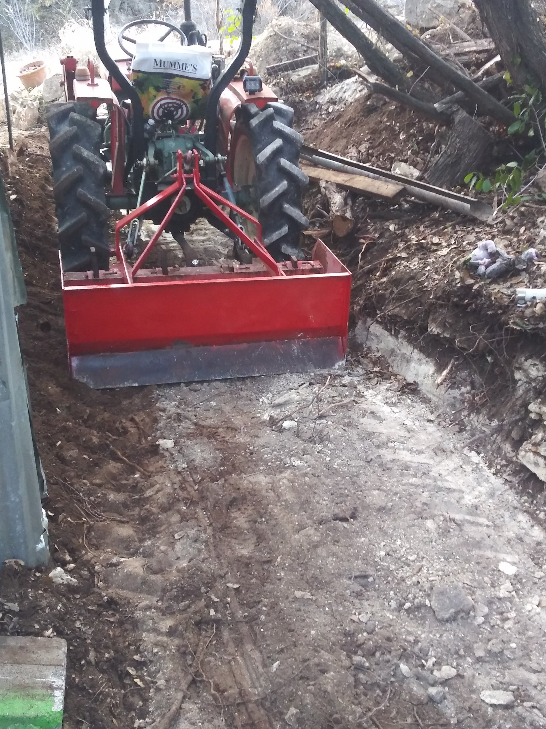 I kind of think "front end loader" means an implement on the front end for picking up and moving loads, from a pile. I fear my little CUT bucket (with a straight edge) isn't meant for cutting into the earth, and if I try to do that, I should go easy, because I'm pushing it out of its intended comfort zone.