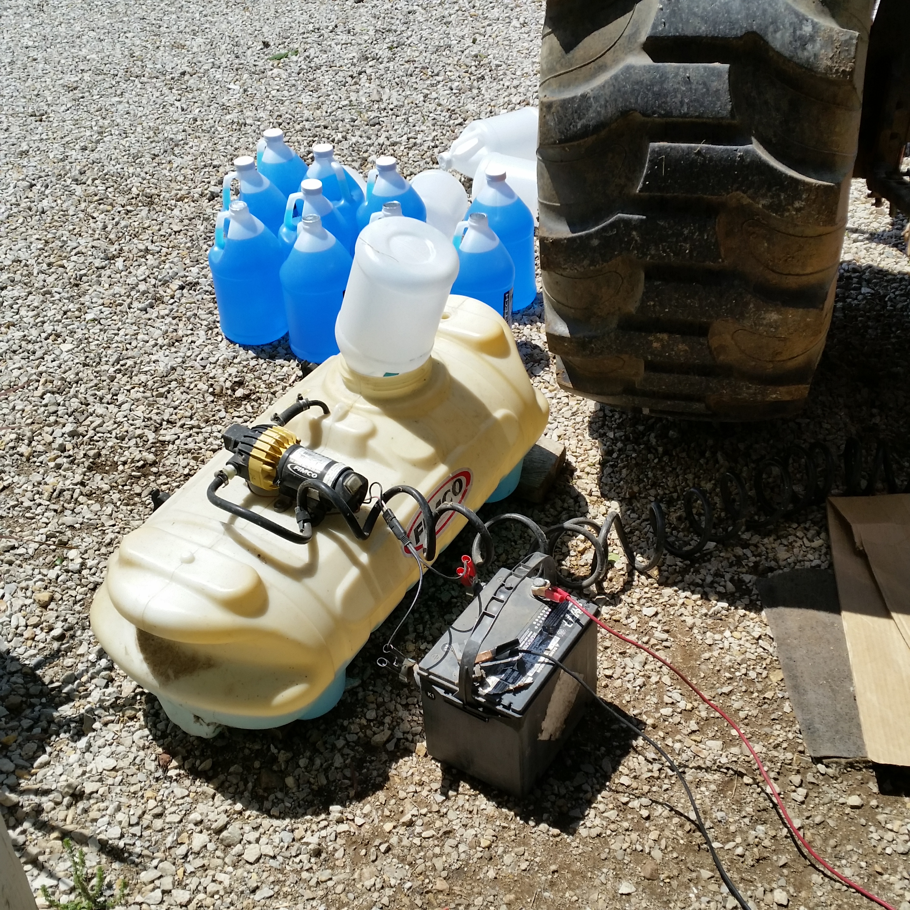 I have one that is towed behind my lawn tractor and that is a brilliant idea. I have a 12V RV pump I was going to use but this is a better way. Thanks for posting!