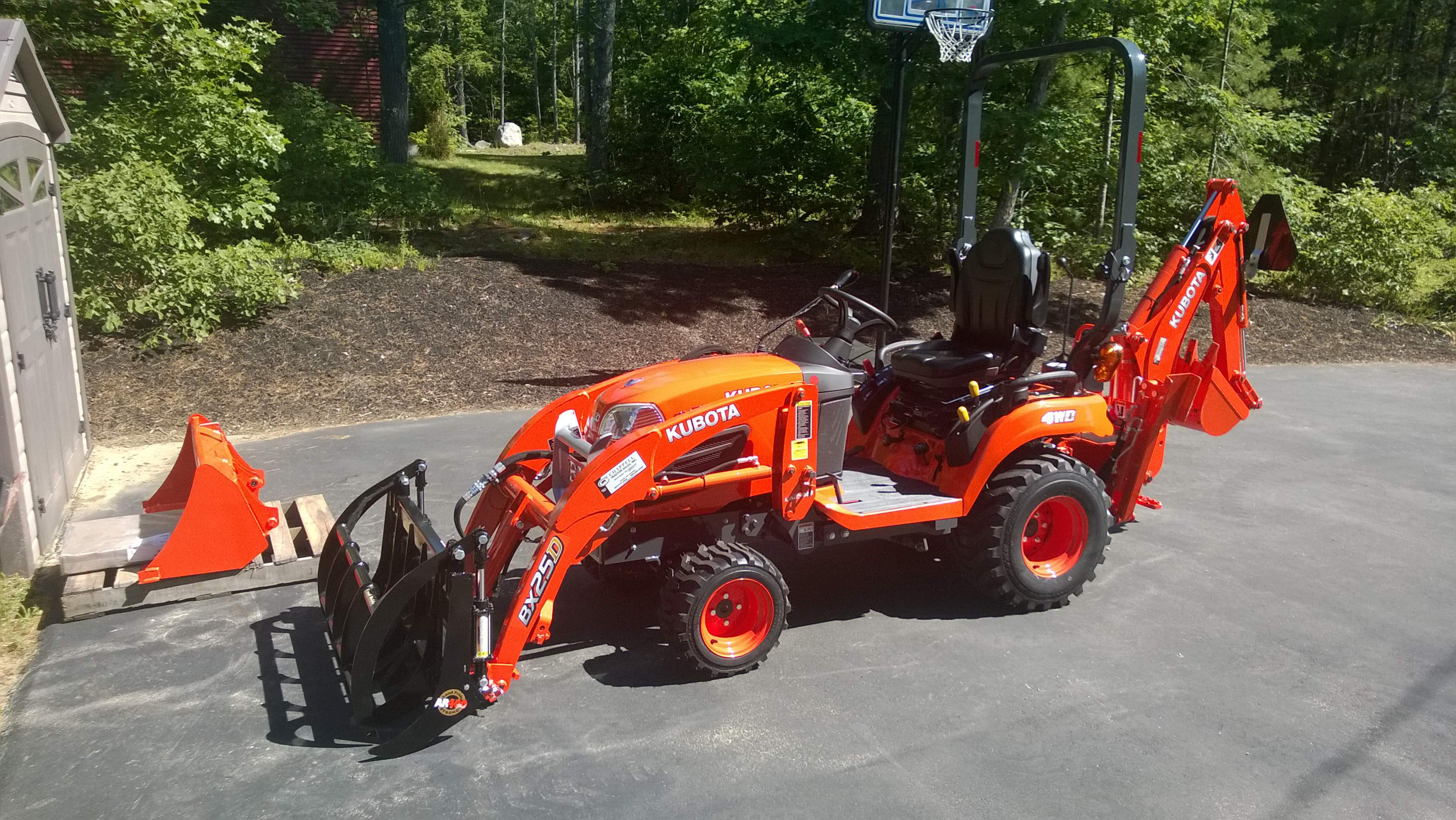 Congrats on a great little powerhouse from another new BX25D owner...I'm building a garage and the slab contractor was at my place today to set the forms...I tore down a shed and leveled the area for the slab with my BX and it was really a pleasure to use...today when the slab guy was having trouble digging a footing with his hand shovel, he asked if I could help him out with the Kubota...I drove over to the side he was digging and with several scoops with the FEL his trenches for the footing were done.