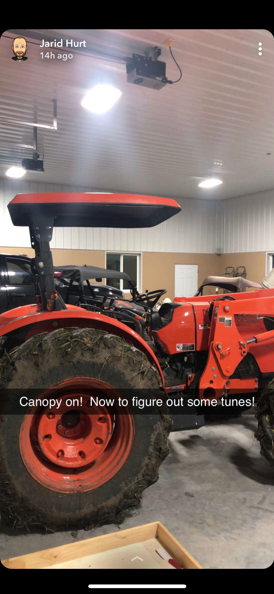 Going to add some small Bluetooth speakers somewhere in the canopy. Gotta have some tunes while I’m working, and the wife didn’t think I needed a cab tractor so I’ll improvise!