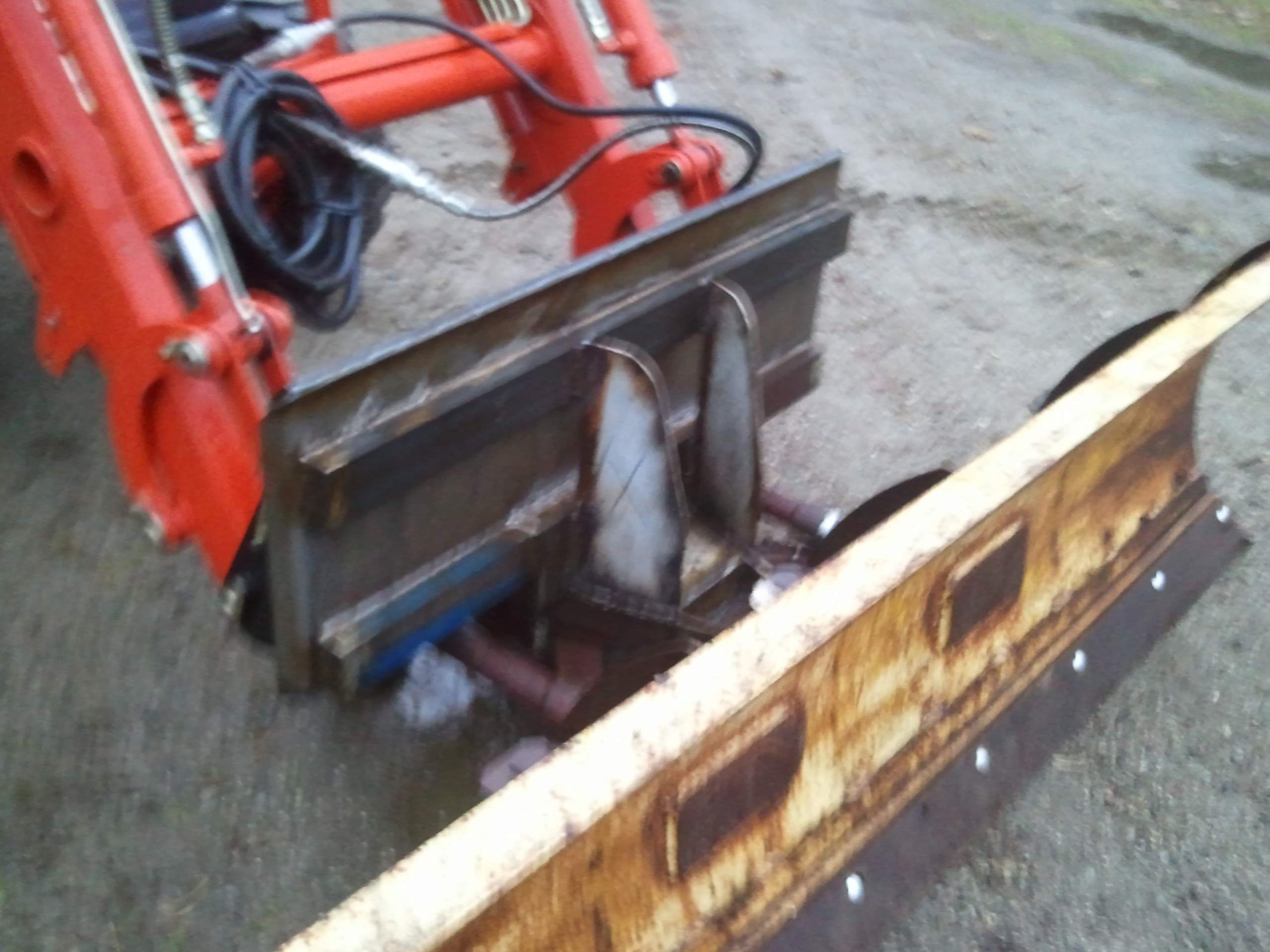 It took 2 small snow storms to finall get enough snow to plow. I took an old Fisher 71/2' snow and converted it to QA. My thanks to kubota tee and 4shorts as I followed their designs. Works good, still on the low end of the learning curve. I had to throw this together in a hurry so had a couple of bugs. I did not have time to drill the pivot bolt for a cotter pin. I double nutted it instead. I used lunch pins for rear shoes. They all failed. But not until I plowed an acre of shop yard, my 300 ft driveway and yard, and did 1/2 of my neighbors mile long driveway.