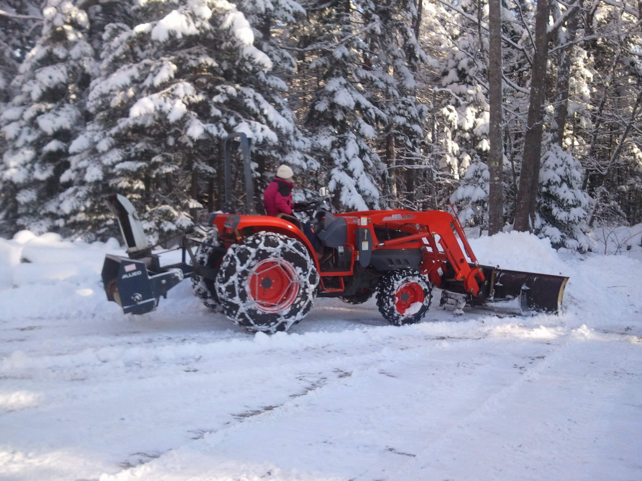 Blower on back with a good snow blade on front? Stylin' ! Thats a nice set up. Love to have a blade on front.