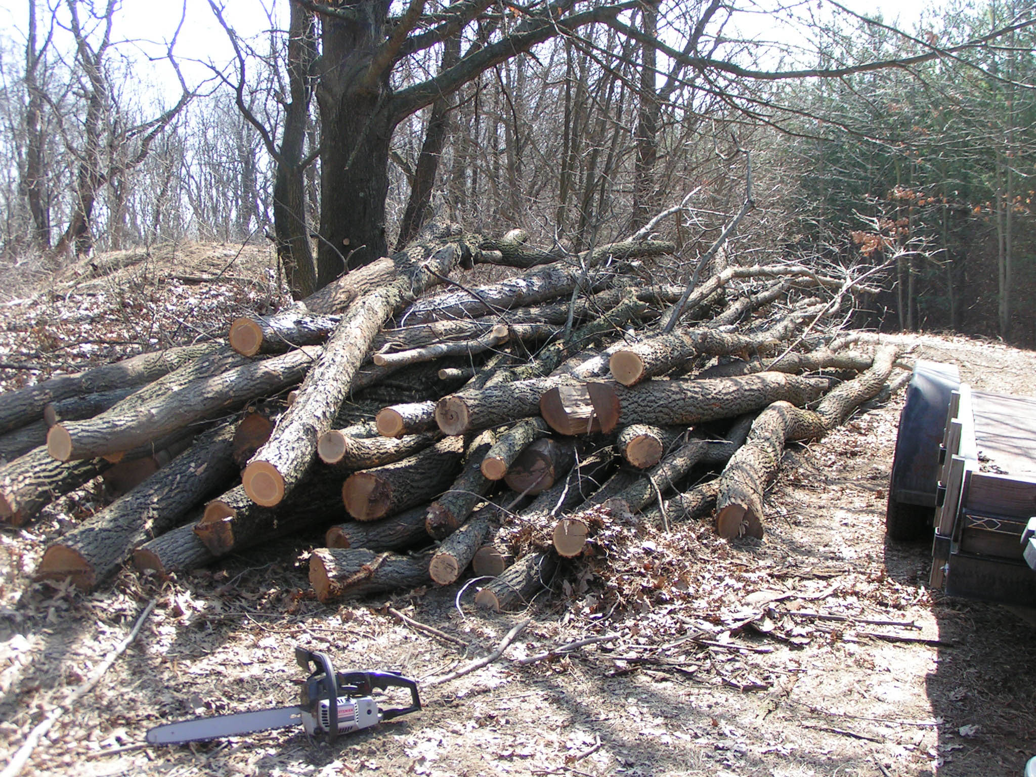 Anyhow, three or four weekends ago I went to our place and dropped about 50 small sassafras and locust trees in the 12" and under category as well as two larger cherries in the 18"-22" category with my chainsaw. That took a couple hours.