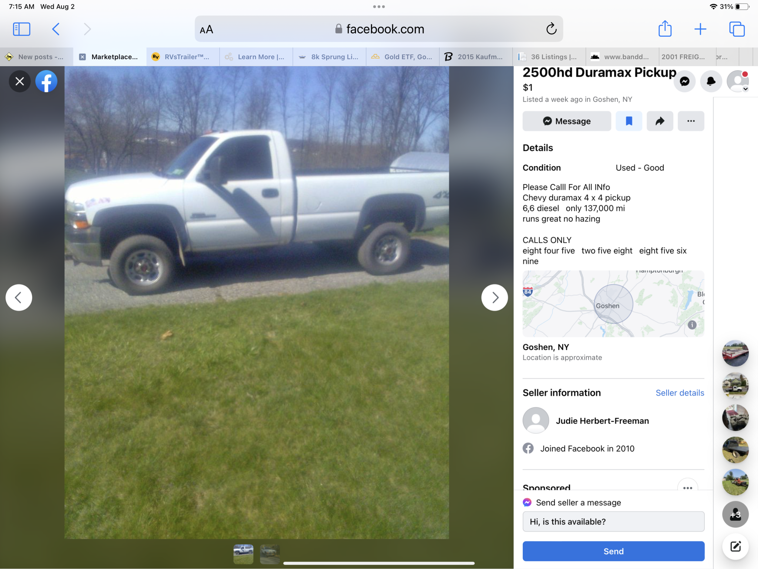 Here’s an example of the incredible photography you get in some for sale ads. Picture looks like it was taken under water. Love the price! $1 !!