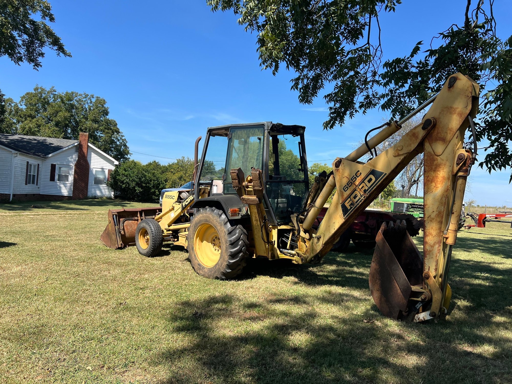 Description: If you need a solid unit for your construction site, landscape inventory or just a overall solid utility backhoe on the farm, this unit should meet your needs. Ford 655C 2wd Backhoe; 21 inch rear bucket; cab enclosure but needs glass and air conditioner work; showing 5205 hours on the unit and seller stated the engine had been overhauled and has less than 500 hours on it; 4-N-1 front bucket but needs some welding work; solid unit mechanically. Make: Ford Model: 655C Model: 655C Serial #: A403925 Hours: 5205.0 Enclosed Cab: Yes FASTLINE SALES REPRESENTATIVE Nick Herring nick.herring@fastline.com 919-922-2854 Item Location - Address: Provided By Seller Item Location - City: Concord Item Location - State/Province: North Carolina Item Location - Postal/Zip Code: 28027 Item Location - Country: United States