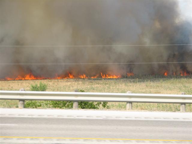 Steph and I just got back from a 4,780 mile trip throught out the Rockies and Western states. We saw about a dozen forest fires in the distance, but it wasn't until we got to Ft. Worth that we saw one up close. It was about a ten acre grass fire along Highway 287 two miles West of Interstate 35W.