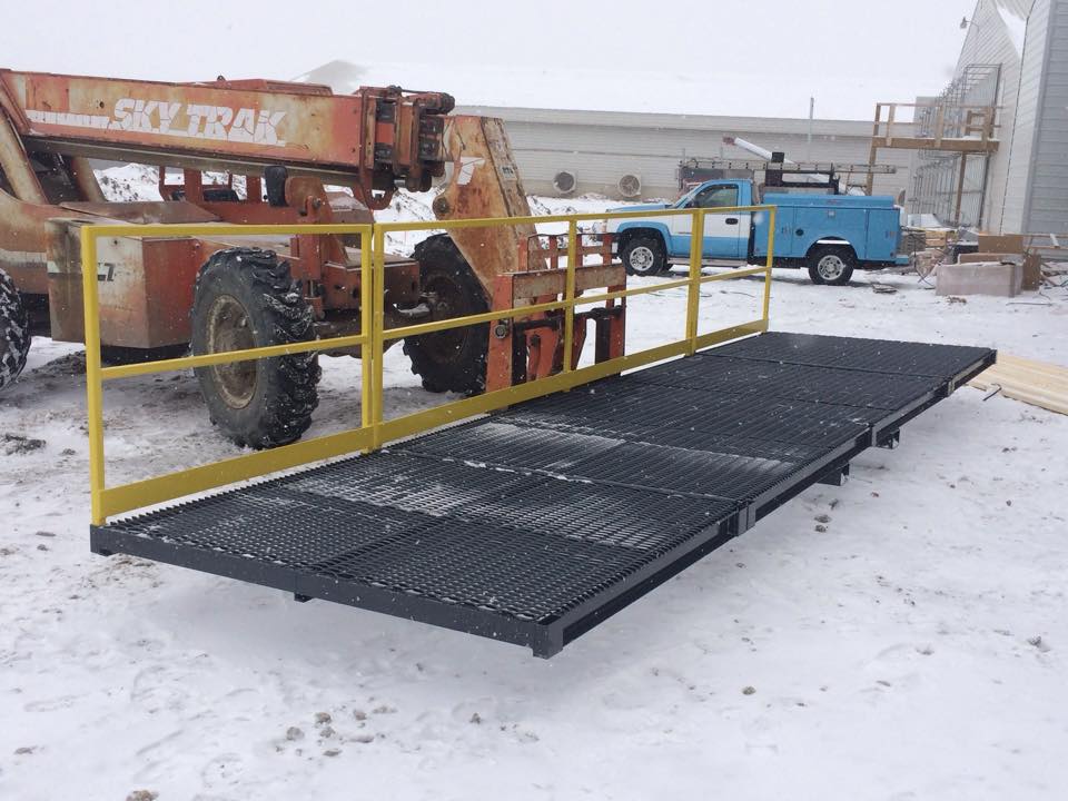 Haha. Nothing like being 14 feet up in the air and hoping your pop doesn't bump the tilt lever!I remember my pop lifting me up with the forklift to change lightbulbs in his shop (20' ceilings). We nailed some 2x4 railings onto a pallet and called it done! OSHA would have shut him down for sure.
