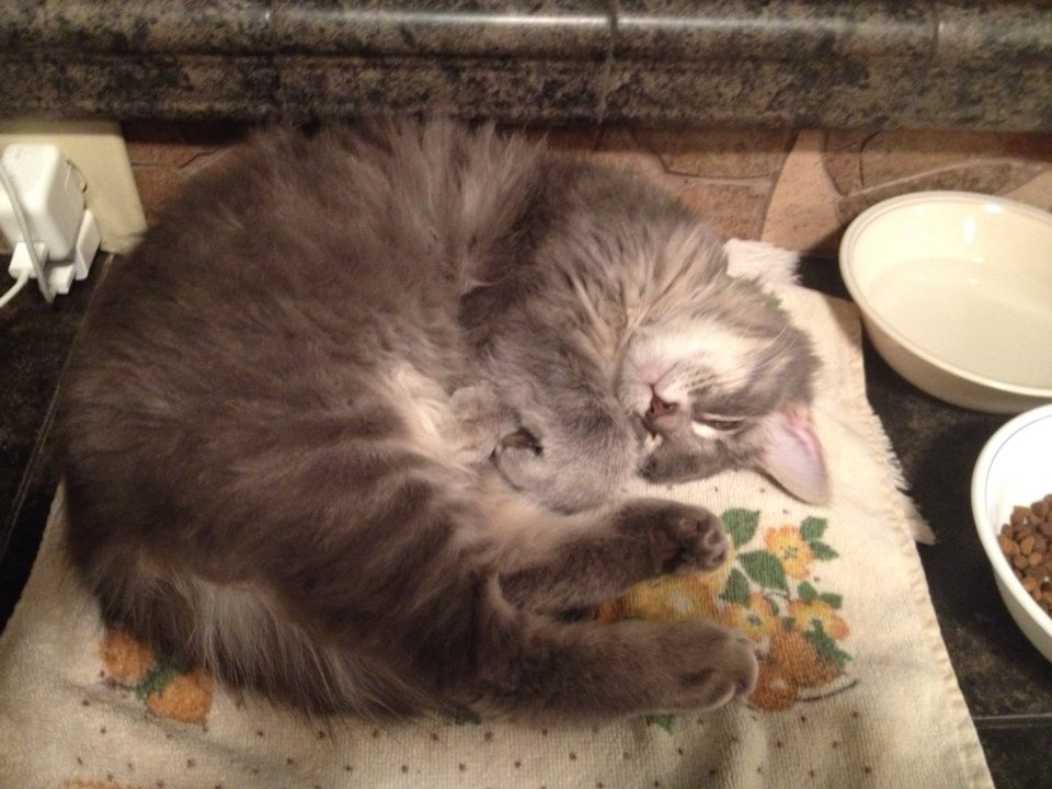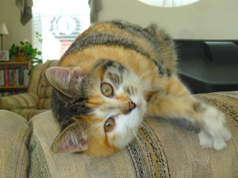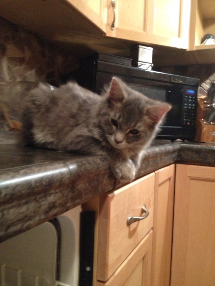 A 12 week old kitten followed us home from our afternoon walk. The whole mile home, my wife was saying, "we are not keeping this cat." Got home, it stayed on the porch and after awhile we fed it some left over cat food we had for a previous cat that the coyotes killed. 2 weeks later, the cat was still there but Kathy was saying, "It's a pretty nice cat, now I'd like to keep it."