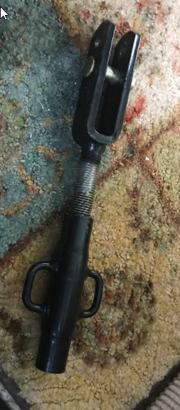 It's about 10" long. Opposite end has internal threads and hoping it is something for the 3 pont hitch.