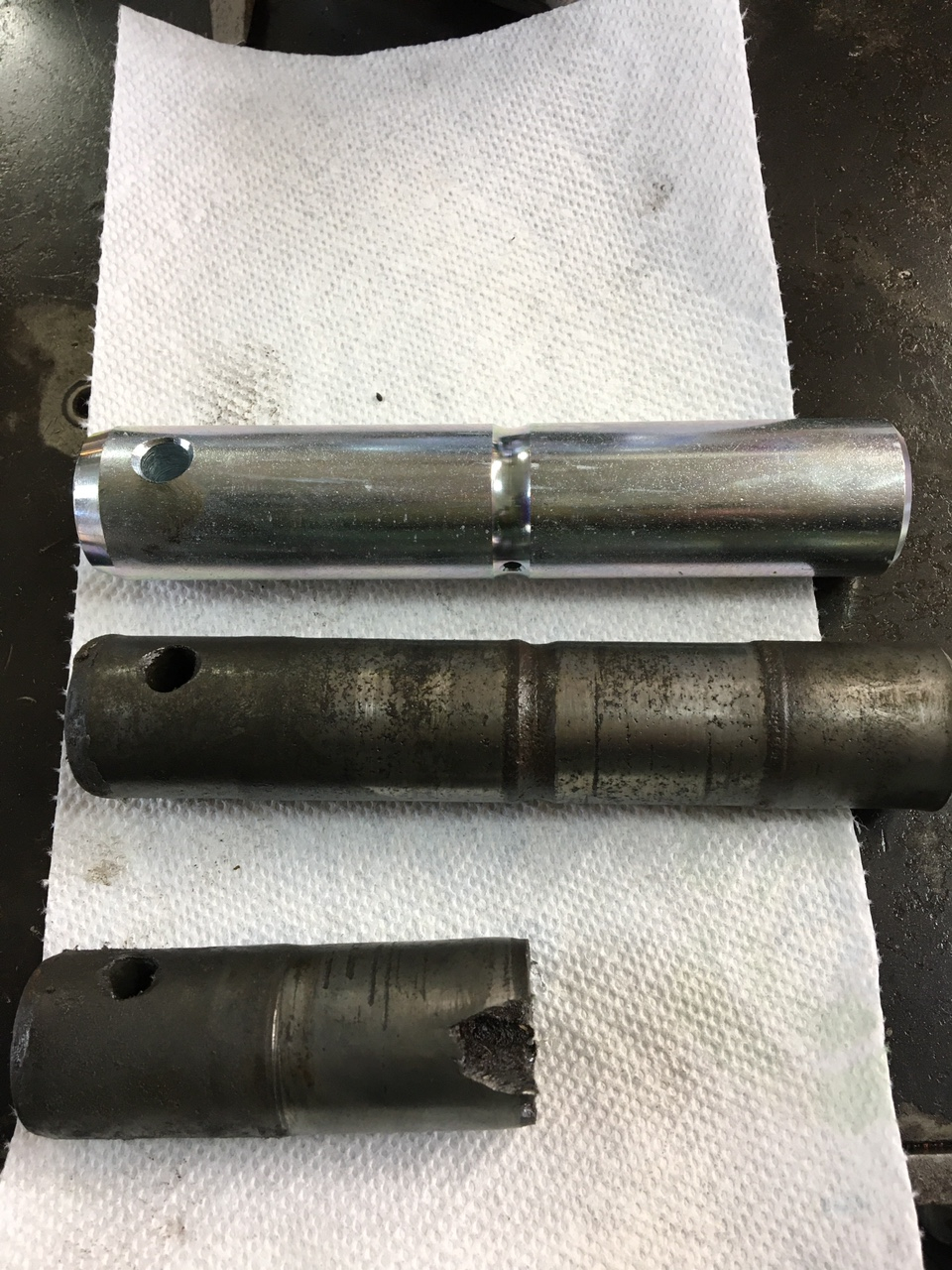 Likely no replaceable bushings in any part of a FEL. A piloted reamer is all but a necessity to assure alignment (square) if done on the machine vs say plopped onto a milling table of adequate size. Consider what's called 'stress proof' for pins as seen here at McMaster, but check your local steel supplier as it's pretty common stuff and often for pins.