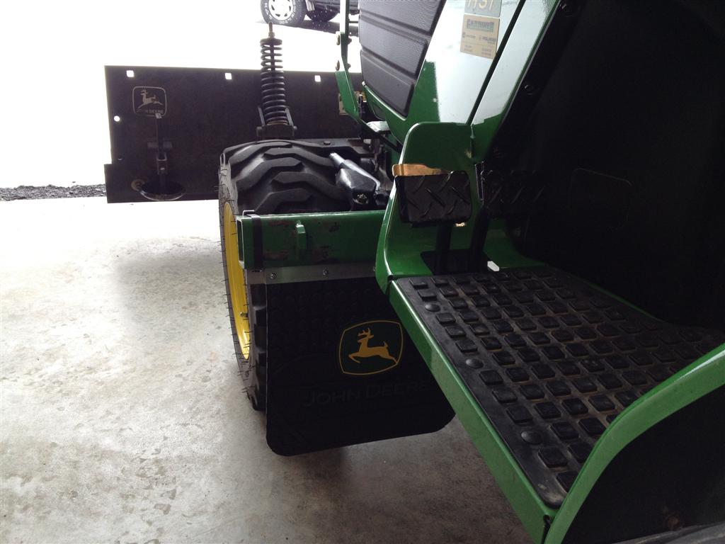 And, I don't have a picture but while plowing and roading to the neighbors there was A LOT less spray off the tires hitting me and the tractor. Probably not as good as real fenders, but it may give some ideas...