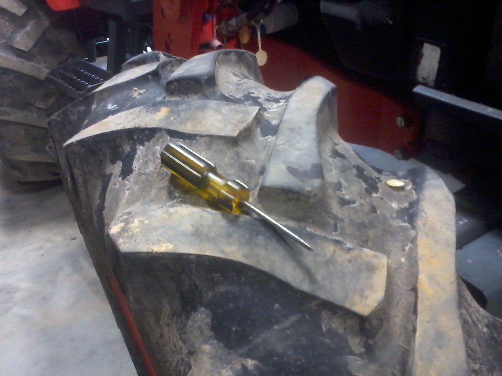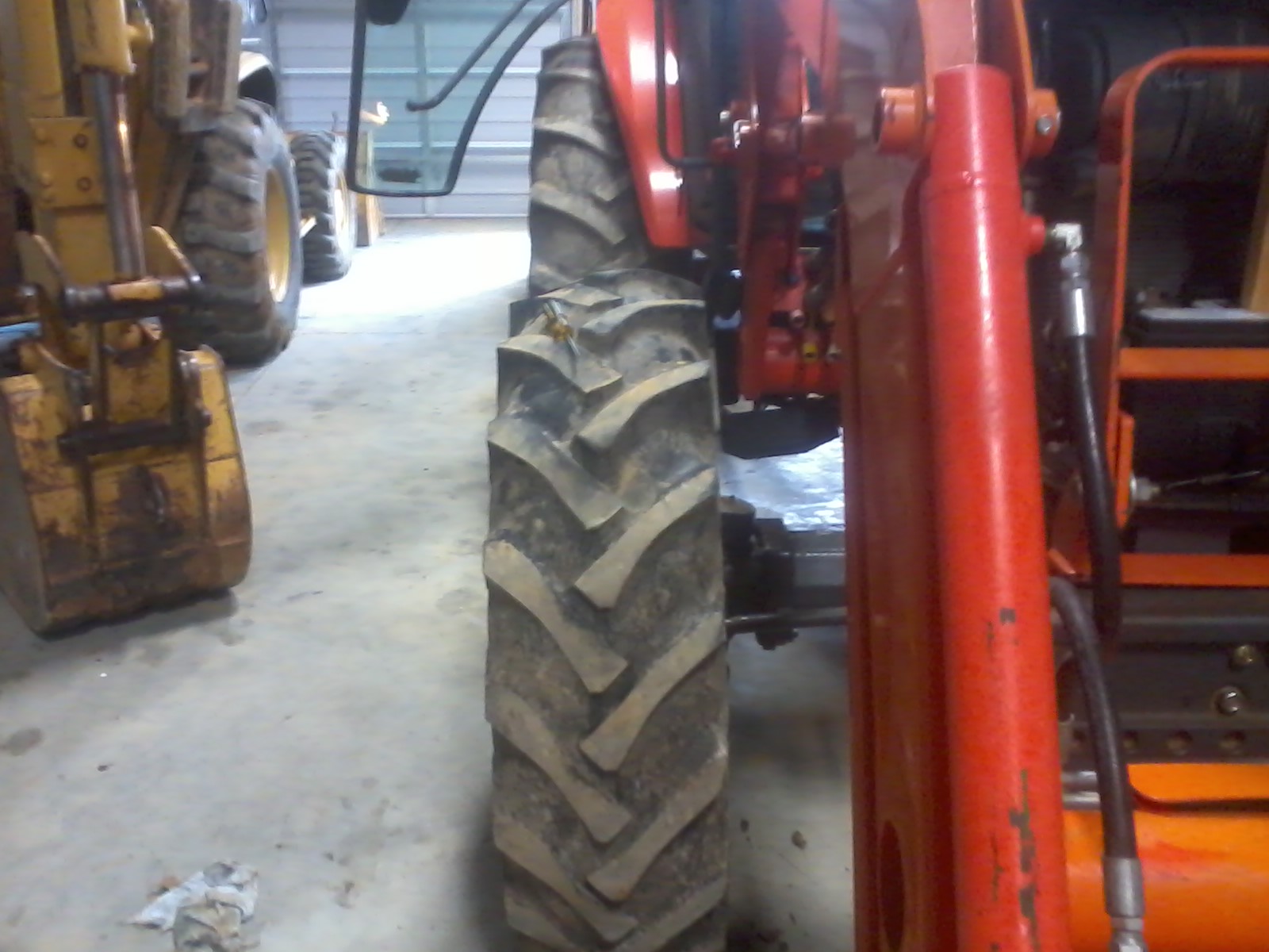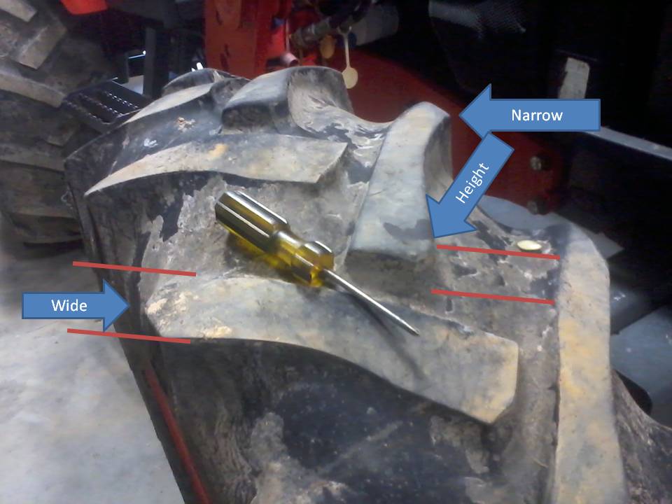 The right front tire has some bad wear on the outside tread. Used a level against both front tires and both seem to have about the same pitch. It could be this tire was taken off another trackor before I bought it, but guess it could be something else.