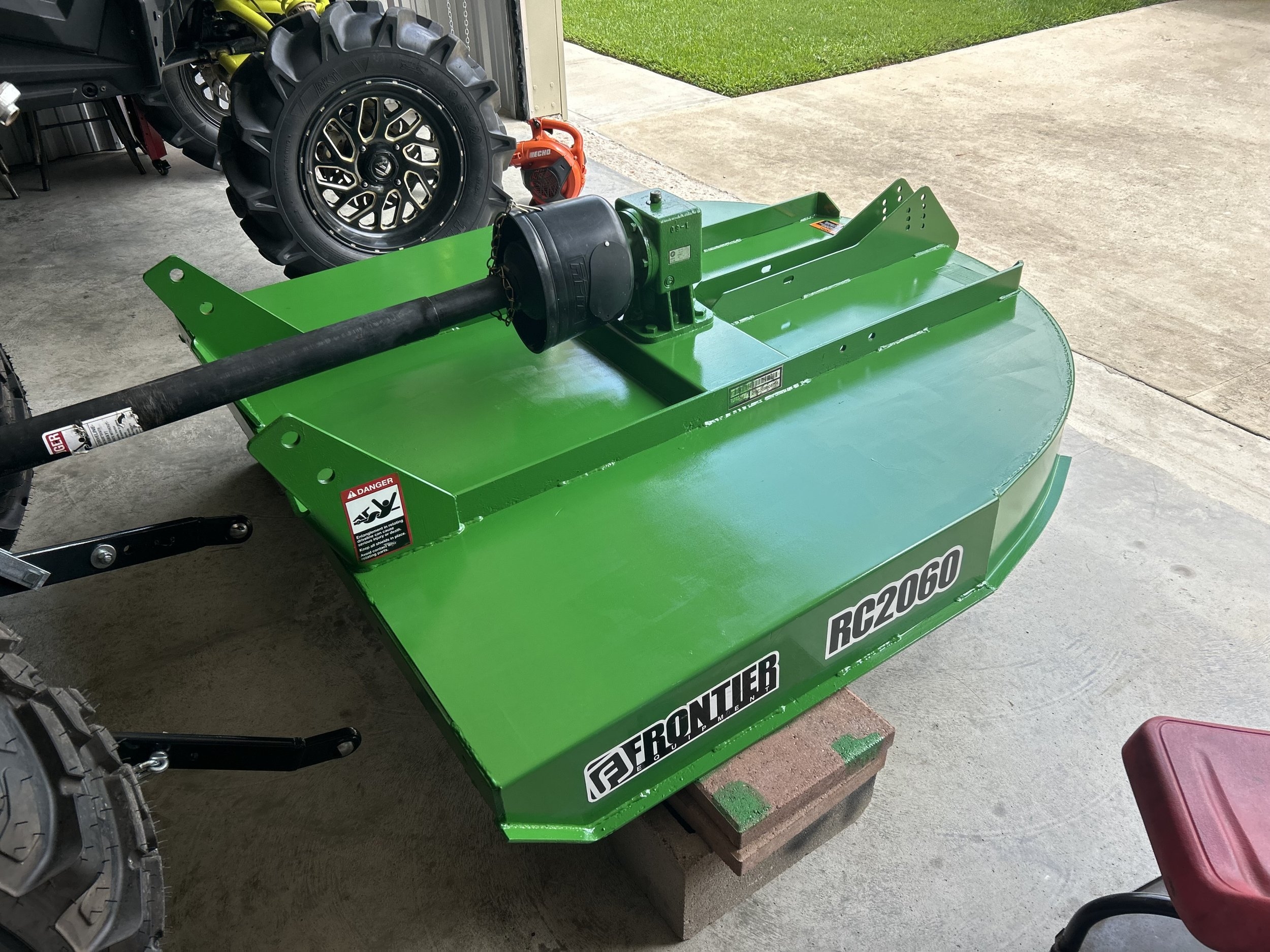 Hello all. I bought a used Frontier RC2060 cutter for my tractor. It had some rust in the corners, so I disassembled it and repainted it, looks good now. When I had it apart I notice the back left corner was “kicked up” about a half inch. In other words when I set it on the floor it won’t sit flat. The back has a “curve” where the left side is a little higher. I see no evidence in the metal where it looks like it was hit and restrained. From what I can tell the 2 pieces of angle iron that run from front to back aren’t level with each other. The left one rises towards the rear ever so slightly. Also noticed the tail wheel mount plates that are welded to the deck are crooked, the hole to access the blade nuts is centered but the plates are off. Is this normal for this brand? Is this a build quality issue? Other than that, it works fine. It’s just my OCD kicking in. It’s like whoever built it didn’t have a straight edge or a square! Anywho thanks for the help. I’ve attached some pictures.