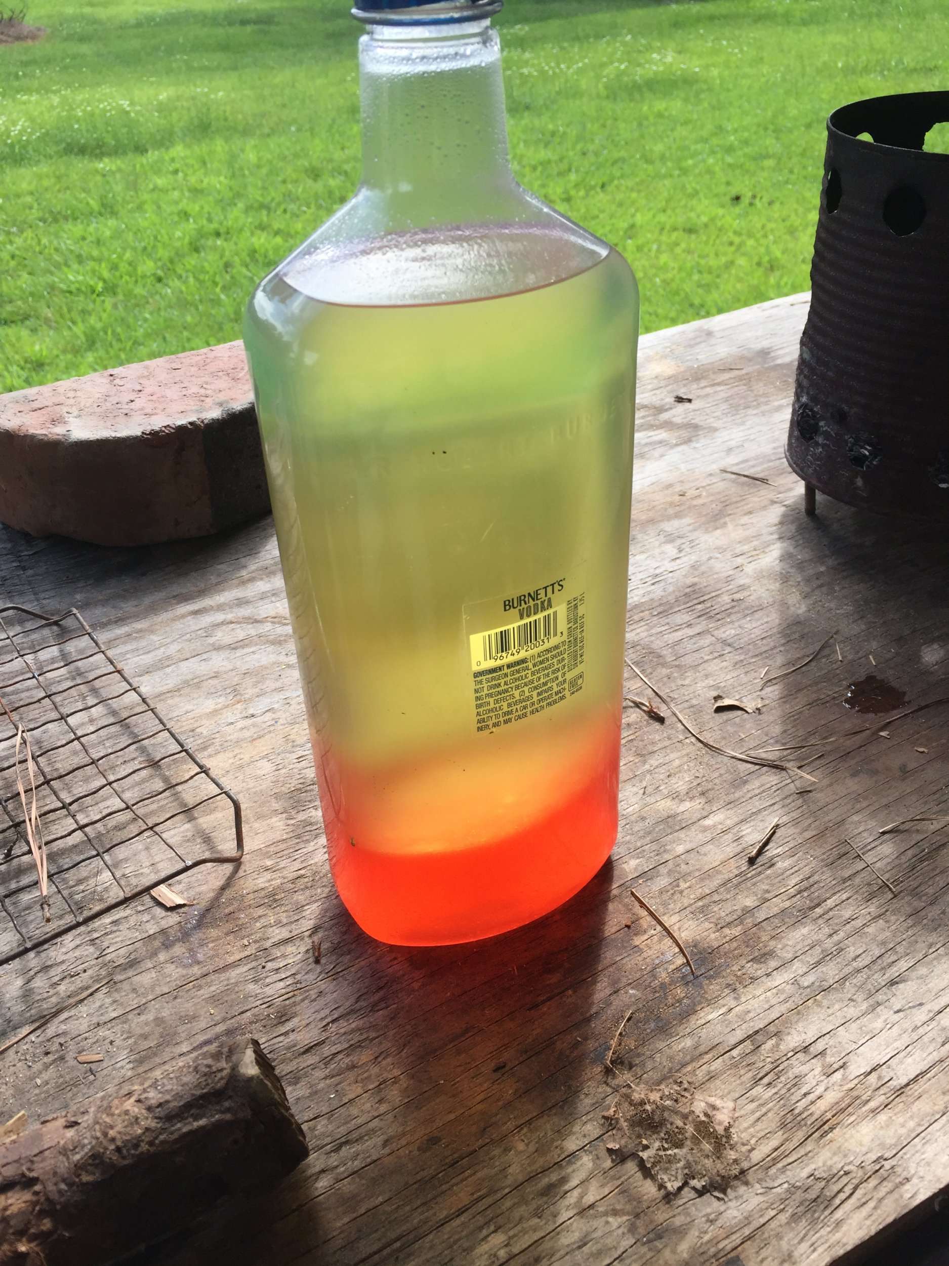 Easy really. Few drops food coloring in water just to make it visible. To keep it simple I use 1.75 liter vodka bottles. Not quite 1/2 cup water then add fuel to fill it and shake well. Settles quickly but I wait till next day and just siphon pure gas into fuel can. Water absorbs ethanol (alcohol) and sinks to bottom. Won’t mix with gas.