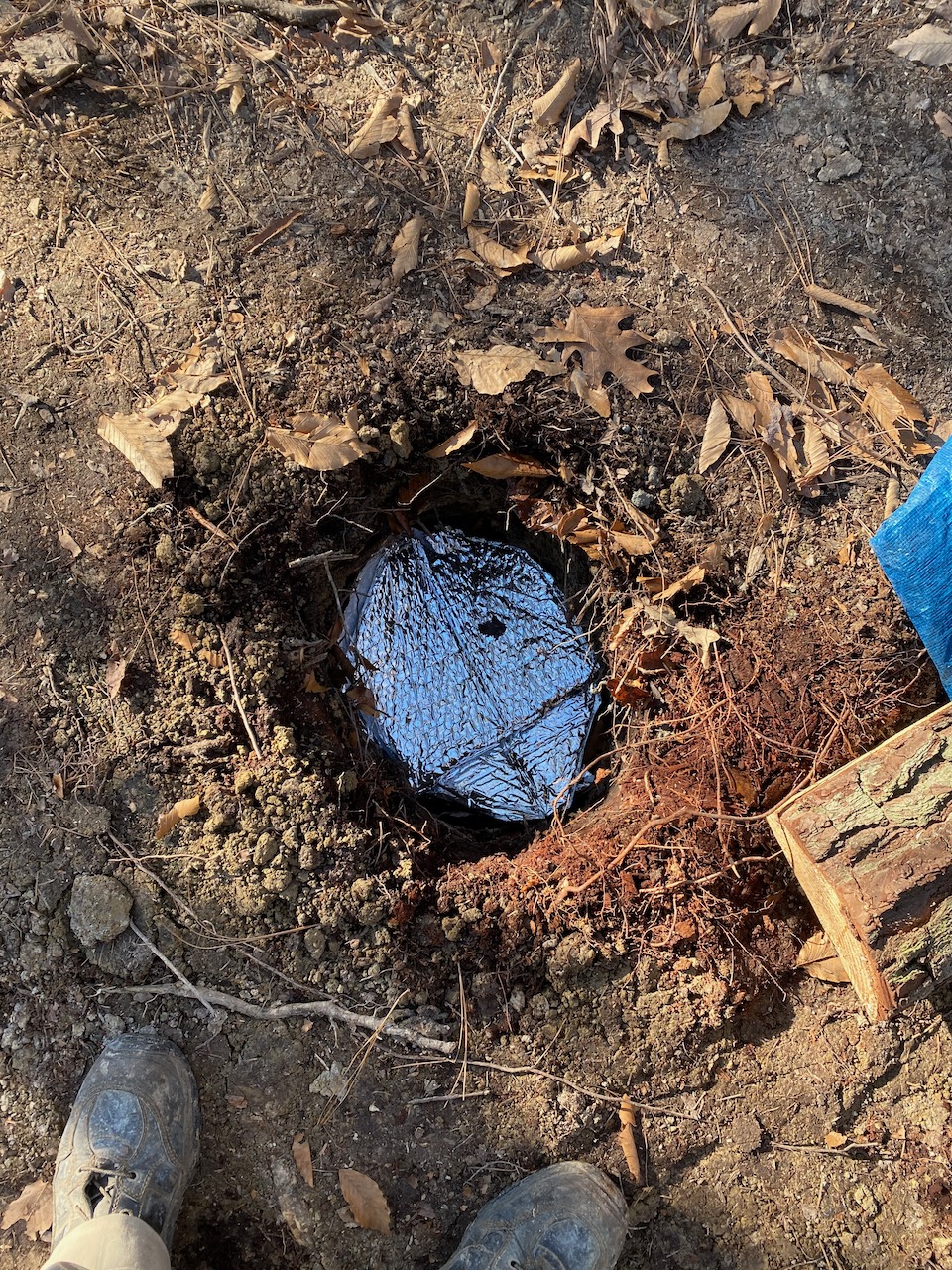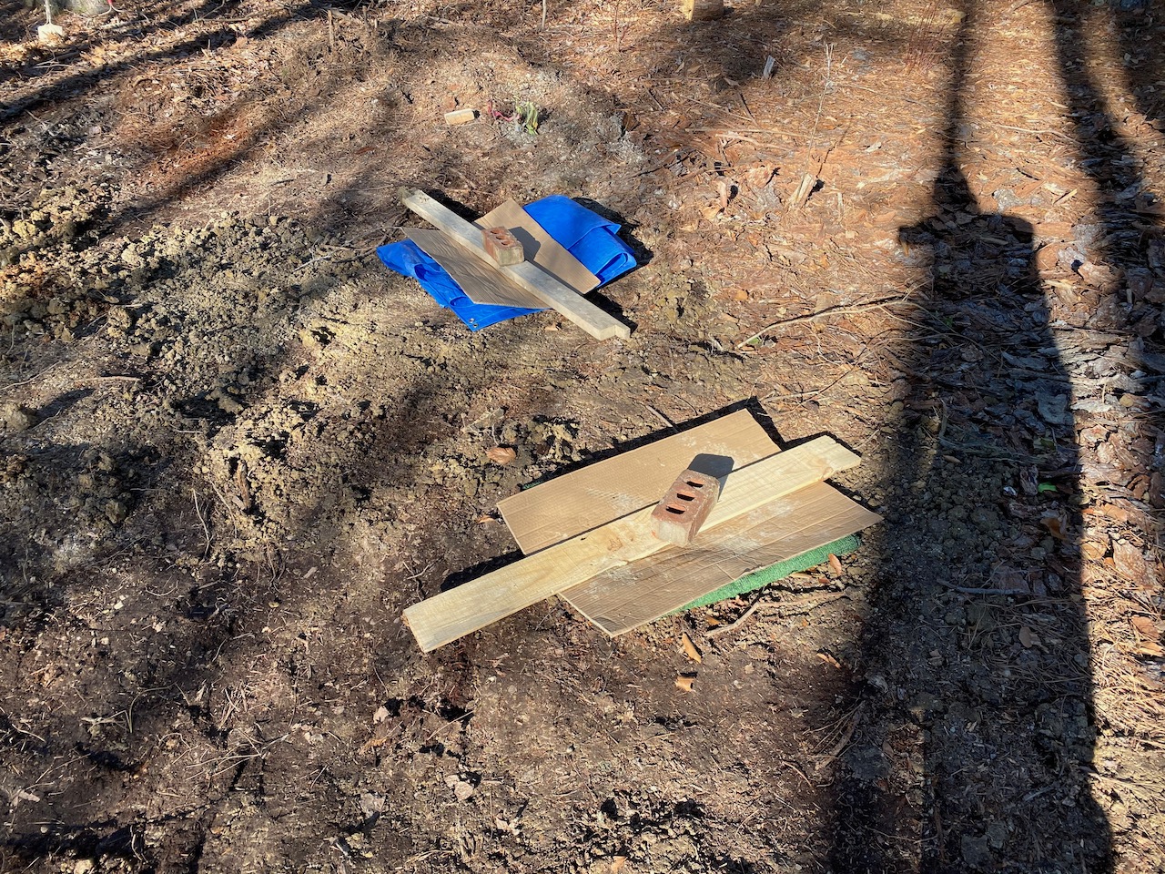 3'x5'x4" pad needed. Temps forecast to be 40s today and tomorrow with low 30s overnight. No major differences for the next two weeks, but rain possibly after tomorrow. Ground is wet from past rains, was partially frozen down an inch or so yesterday morning.