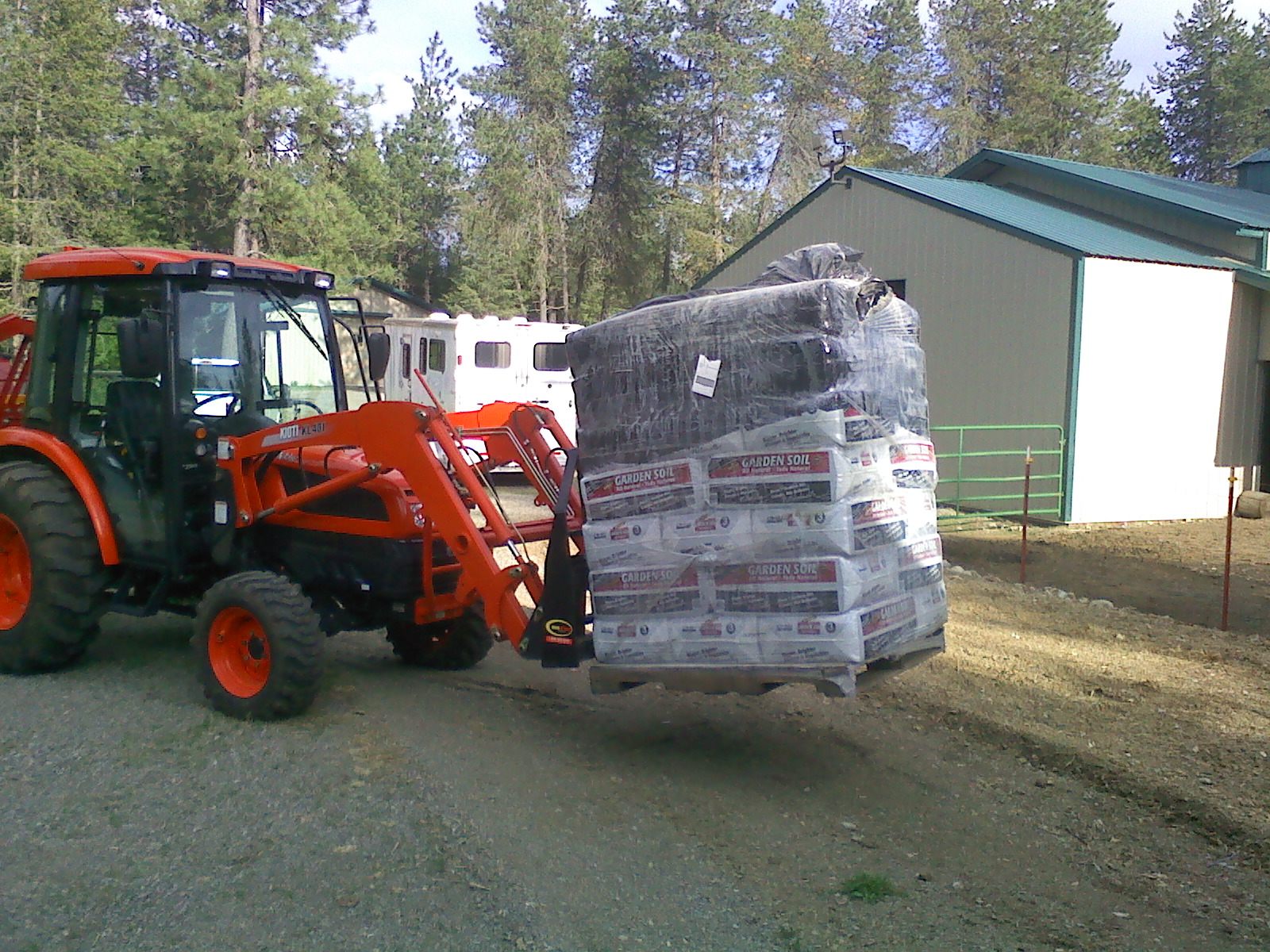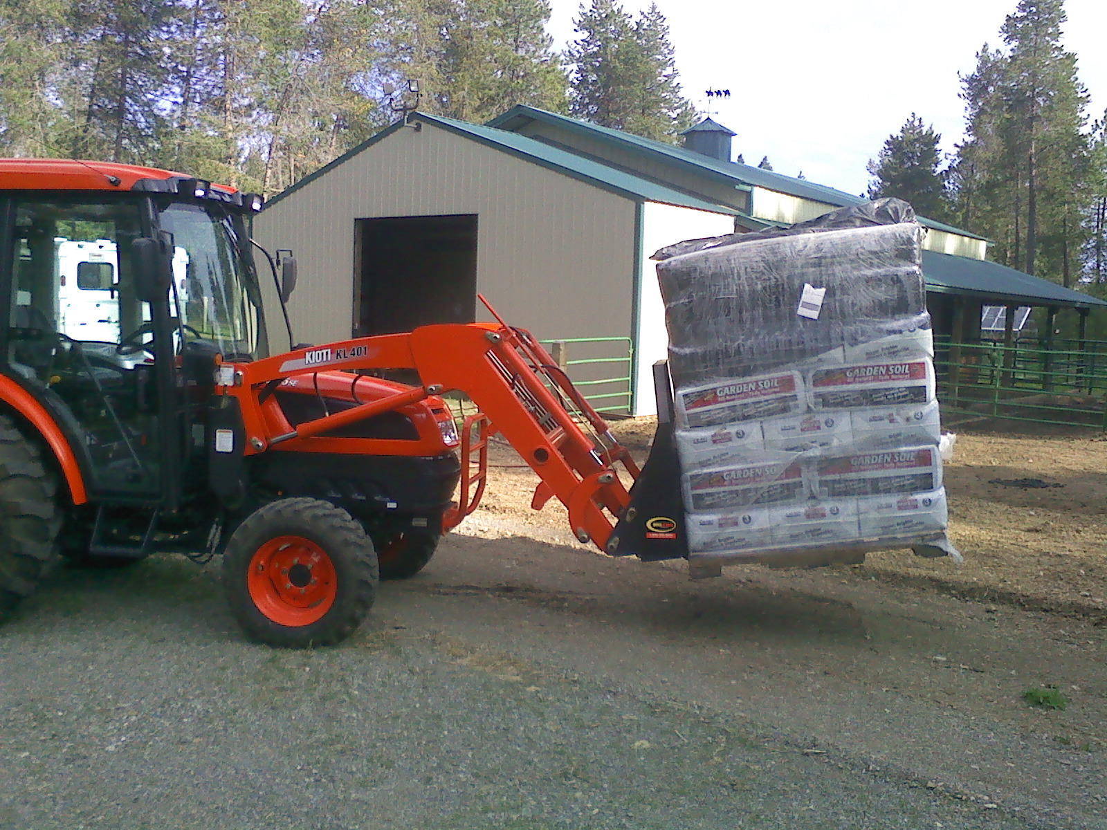 My buddies tractor is a Kub L3540. We were impressed with the performance of his tractor as well. His tractor is equipped with the LA724 loader, with a lift cap rating of 1792lbs @ full height (pins). He was able to lift 37 bags on the pallet (1480 lbs) to working height.