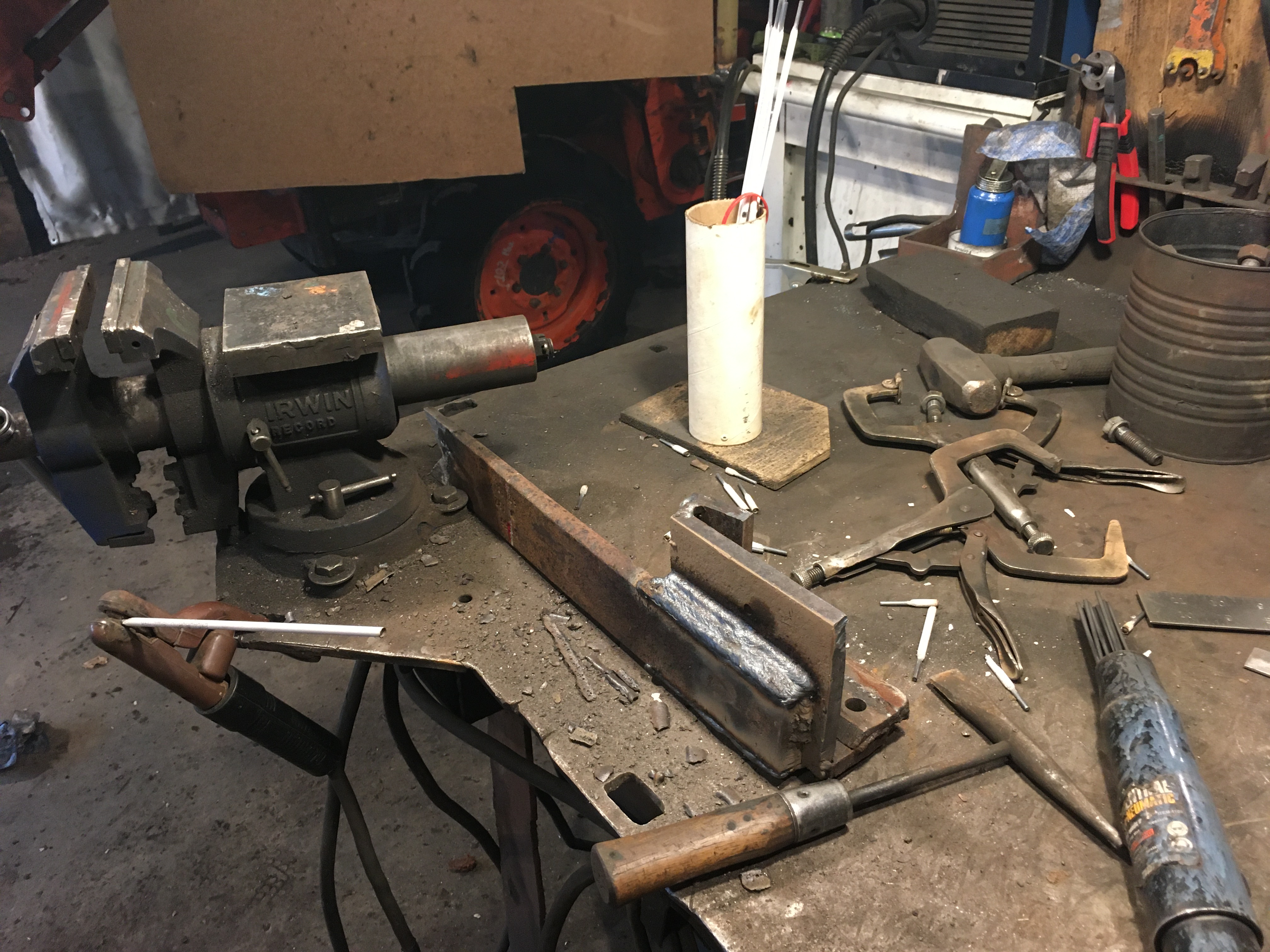 How much freeken weld does something take to make it hold, evidently more than one pass. If I still have multi pass everything with 10018 then might as well stay with 7014 or 7018 rods. I went to move some brush and thought I heard a clink clunk clank ting tong ping pong, so lifted my bucket up and one fork stayed in the snowbank........