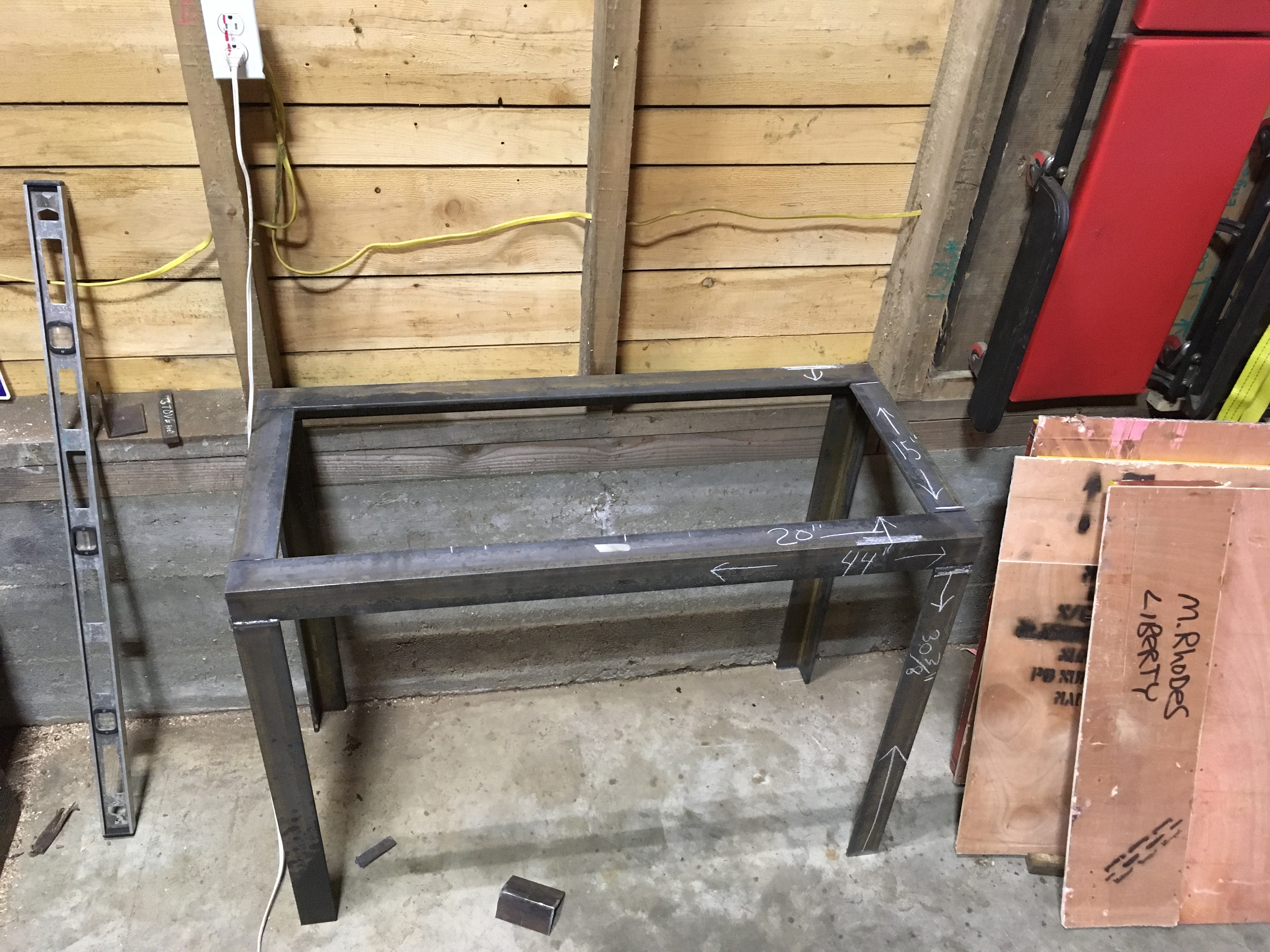 We wanted 1/4 x 3 x 3" in 20' length but the steel shop didn't have it so I ask for 3/8 angle in anything 20' length, they said yes in 2-1/2" x 2-1/2" and they close in an hr, so bought that, just under $110.00 cut in half, the guy said the 1/4" x3" would be about $25.00 cheaper. Before we went to get steel we kinda ran around with tape, measuring how big a stand and came up with 20' should be plenty, ended up being just barely, amazing how inches adds into feet so quick. Now I'm assuming I can make a lathe stand cheaper then buying one, l'll be upset after all done find one for $150.00.....