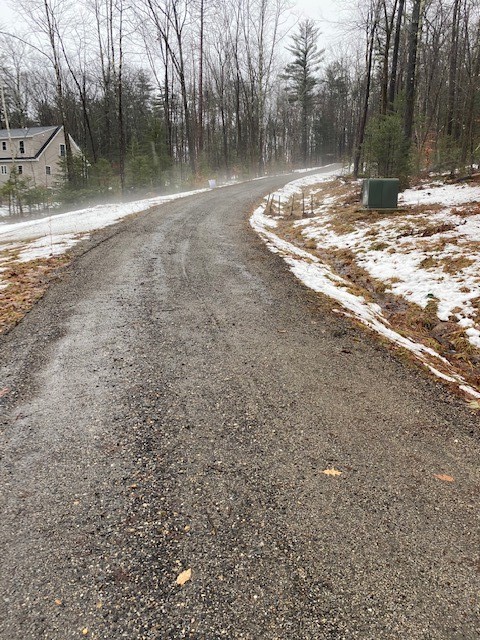 Clearly I would need to dig out the drainage runs (which are clear in the pics as we had a good opportunity to see with the snow melt and rain) and add some good rock to those to stabilize the runs. We would slope a small driveway to the garage off the main drive with the drainages both before and after the garage itself.