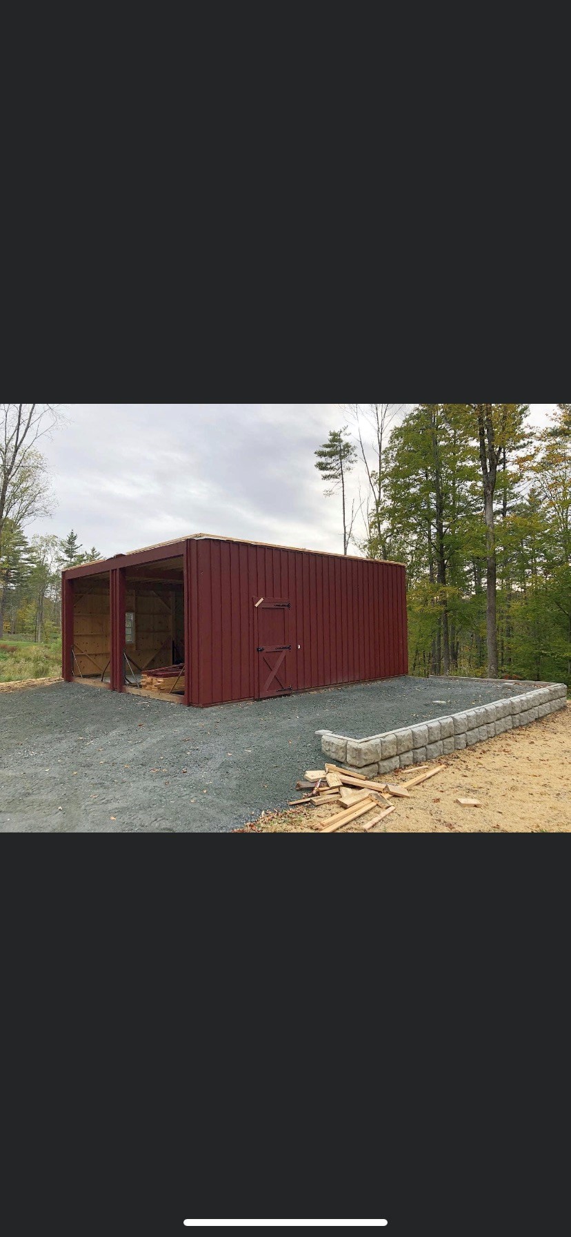 I was thinking we could build out a 3 sided retaining wall, load it with fill and then packed gravel for the base for the garage. (site marked with an X in the pics below in between the two trees (which may need to come down).