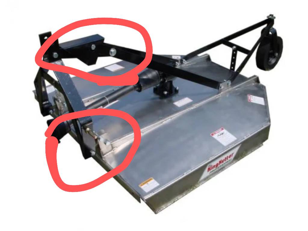 Flex hitch is a king kutter exclusive 3pt implement hitch type that allows the cutter to articulate about 15° on the horizontal axis and roll up and down freely on the vertical axis without binding up on the tail wheel and 3pt system. They're a pretty neat concept but patented last I knew so no one really has anything quite like it except king kutter.Newby here,what is a flex hitch,or guick hitch?