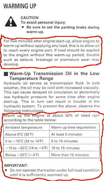 While I may have missed a few chances to test at a lower outside ambient temperature, I do plan to do another test, if and when the temps drop closer to 0F or lower. While I doubt very much if I will have to clear snow at those temps, I do use my B7300 to run my PTO GenSet and the power does go out at any temp. I plan to be ready, by knowing what will be needed to get the tractor running, if and when that occurs. Part of that readiness is doing the periodic maintenance run, which I will work into a really cold weather engine start.