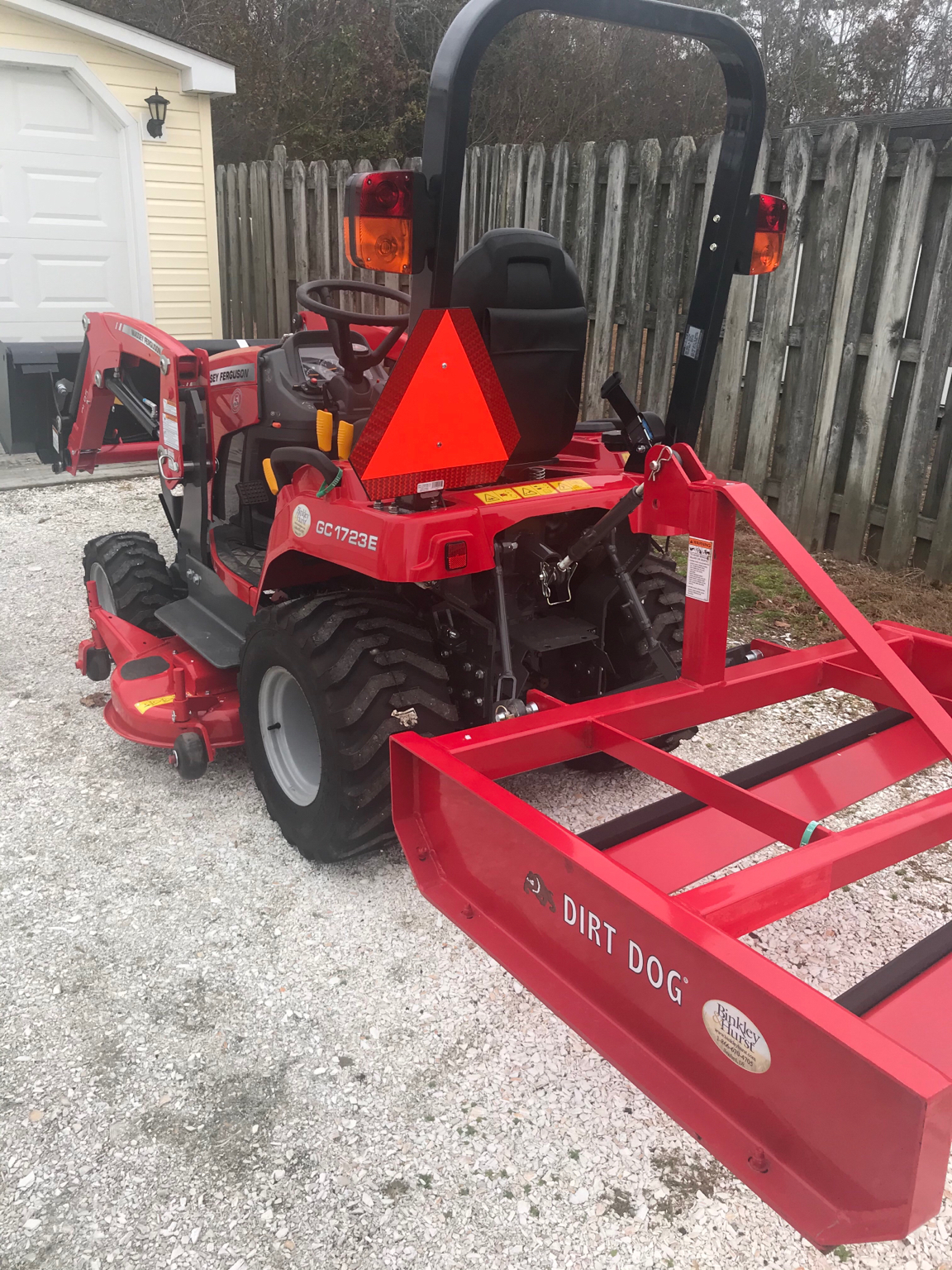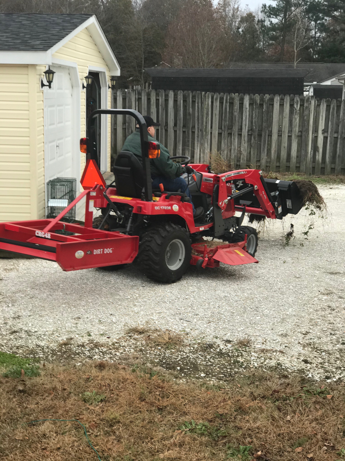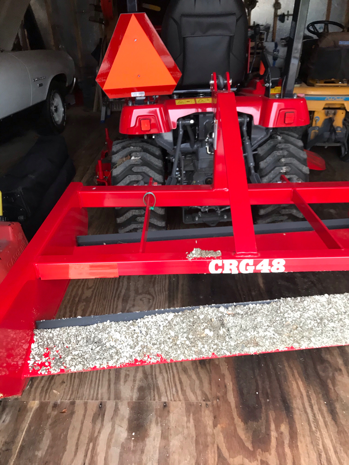 Got the tractor just before lunch so I didn’t have a lot of time. I mowed a stretch in back my hired guy always skipped, then moved a downed pine tree, shoved some brush into the woods, filled a small sink hole and tried out the grader box. That thing is great!