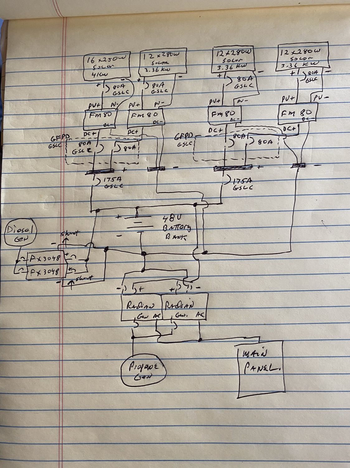 When you go away for a long trip, do you disable diesel backup? If it runs you need to manually reset the FM80 breaker to have panels charge batteries.