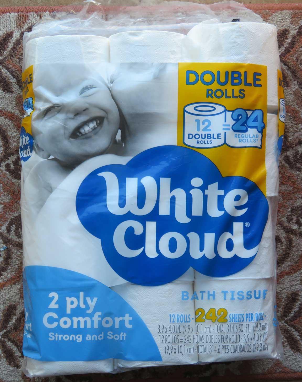 Also delivered were 12 rolls of TP, ordered just over a week ago when the panic was just starting. They're supposed to be double roles, but they're only about half the size of the Costco/Charmin roles I have on the shelf. But after doing some math, they should be enough to take care of business for the next three months, and hopefully somewhere in there I can order more.:crossfingers: