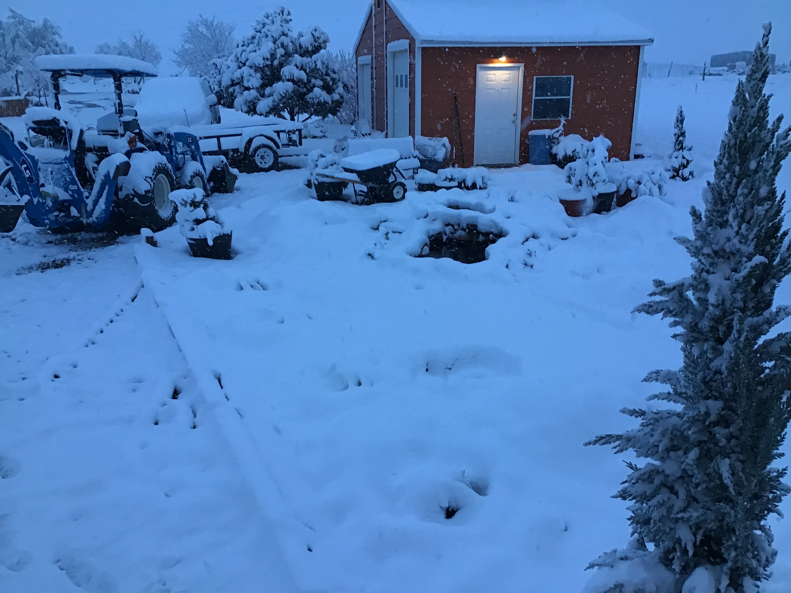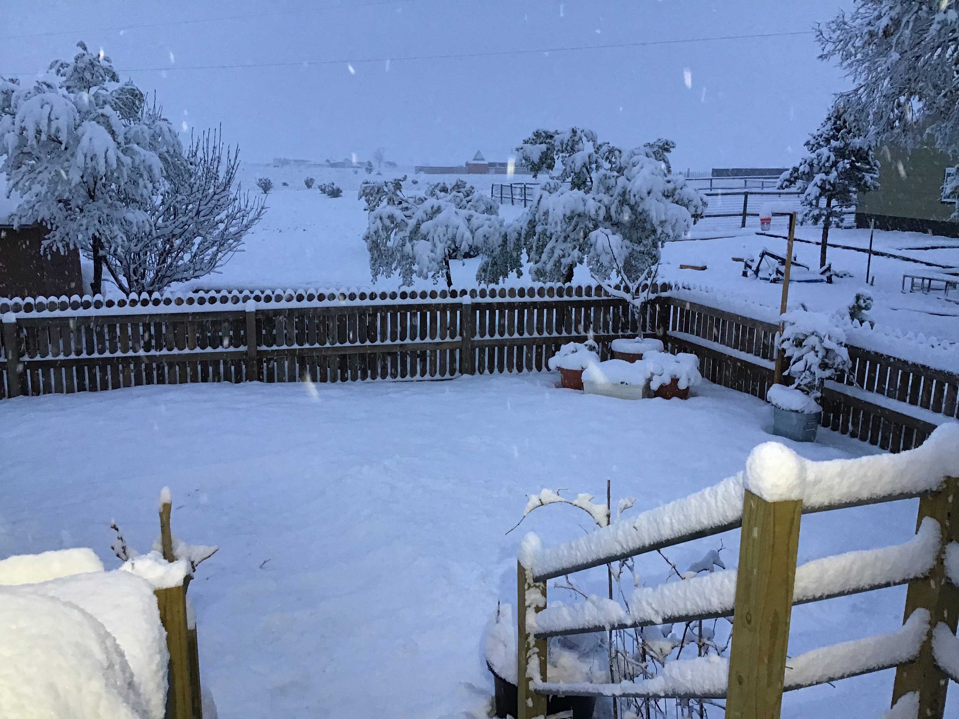 Yes, unfortunately we have been known to get snow just before Easter, when all the bulbs have sprouted / bloomed. This snow was late in coming. Fortunately, I got most of the fresh plants that were for the new landscaping into the garage. There were 6 flowers that were planted, I am sure they are goners along with a couple other plants. Lows tonight going down to 19.... not good for the plants.