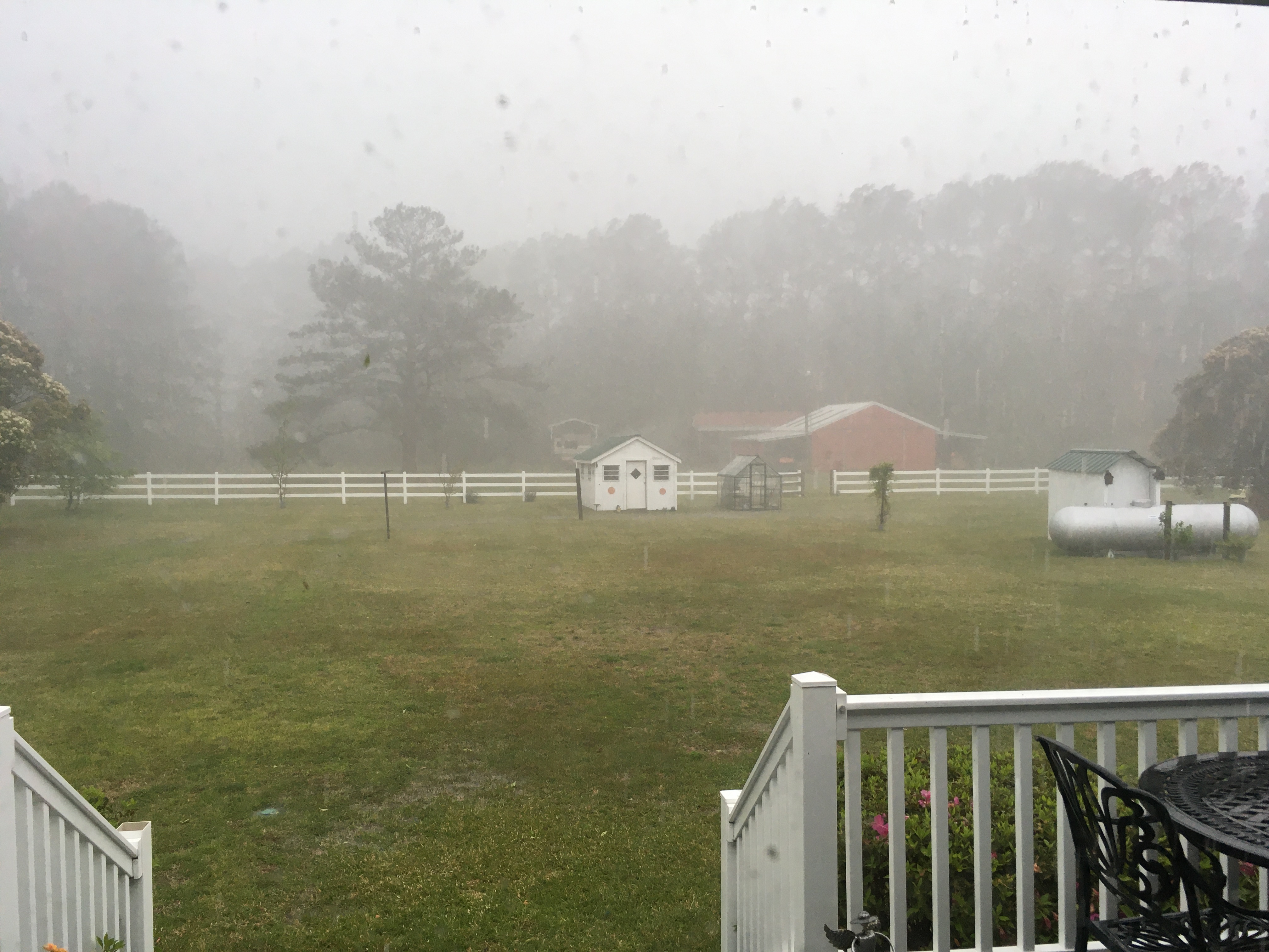 Woke to thunderstorms, Gracie barks and chases the thunder from window to window, so needless to say I wasn’t going back to sleep. 2.81 inches so far and steady pouring. We’ve had gusty winds but nothing like the predicted 60 mph so far.