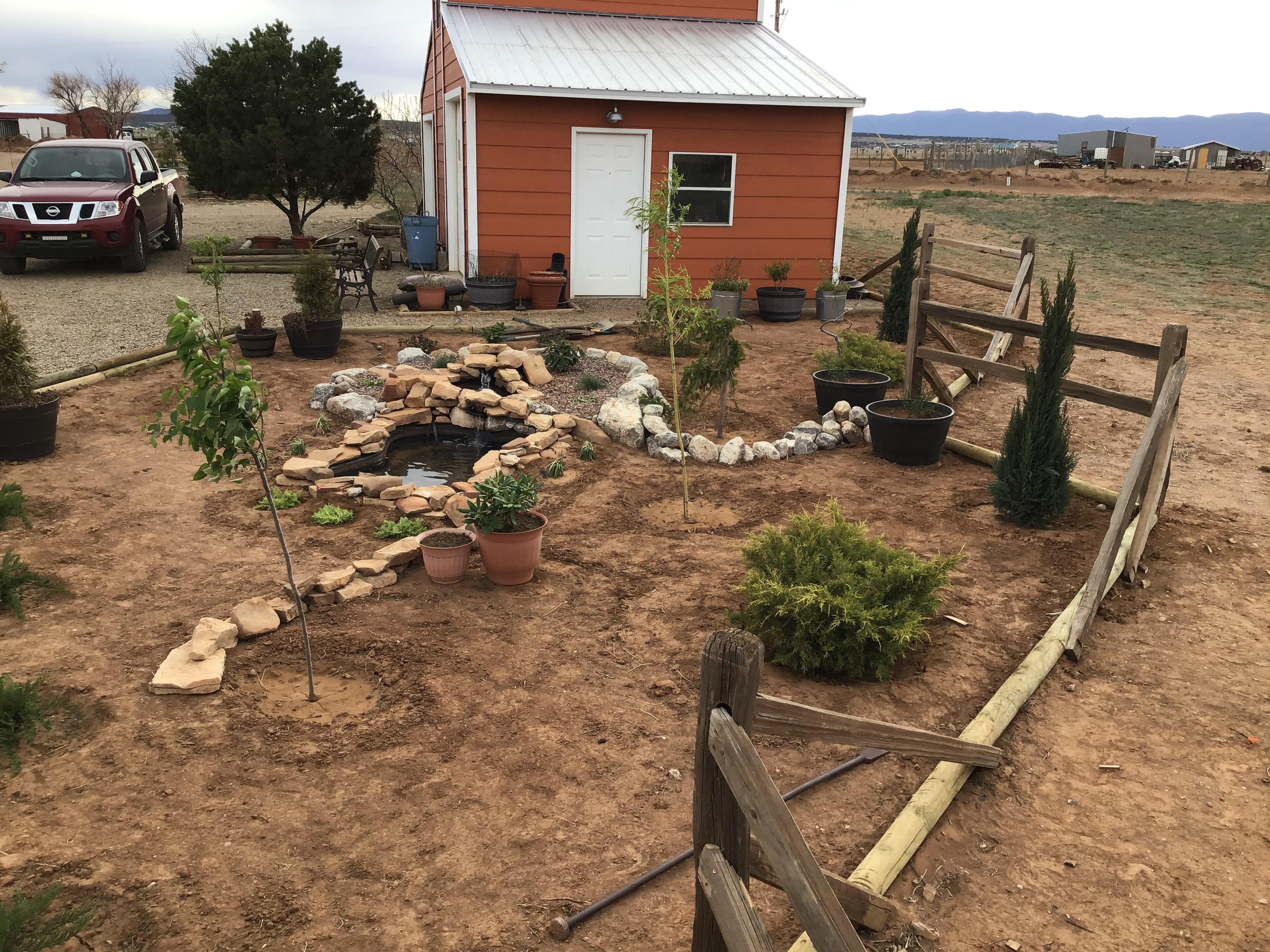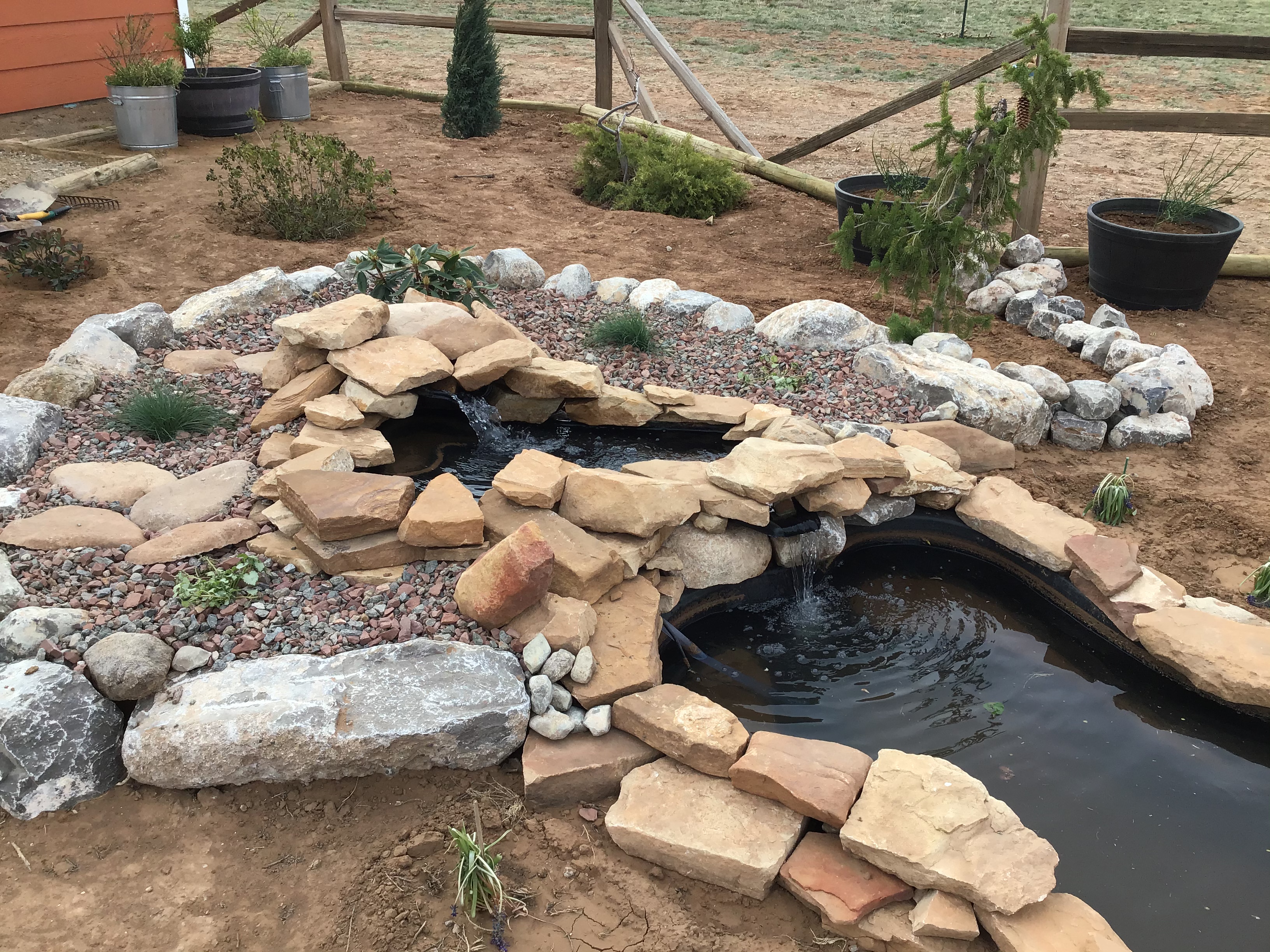 Good evening. I gots bunch done on the landscaping project, all the plants planted in their respective spots. Took the BH off and put on the PHD. Tote the split rail accent fences in place. Added a second level... or is it a third.. level to the pond waterfalls. Now ready to put the landscape fabric down, install the drip irrigation system, then the decorative gravel (YES! More gravel!), and mulch. Not sure how much I will get done tomorrow.