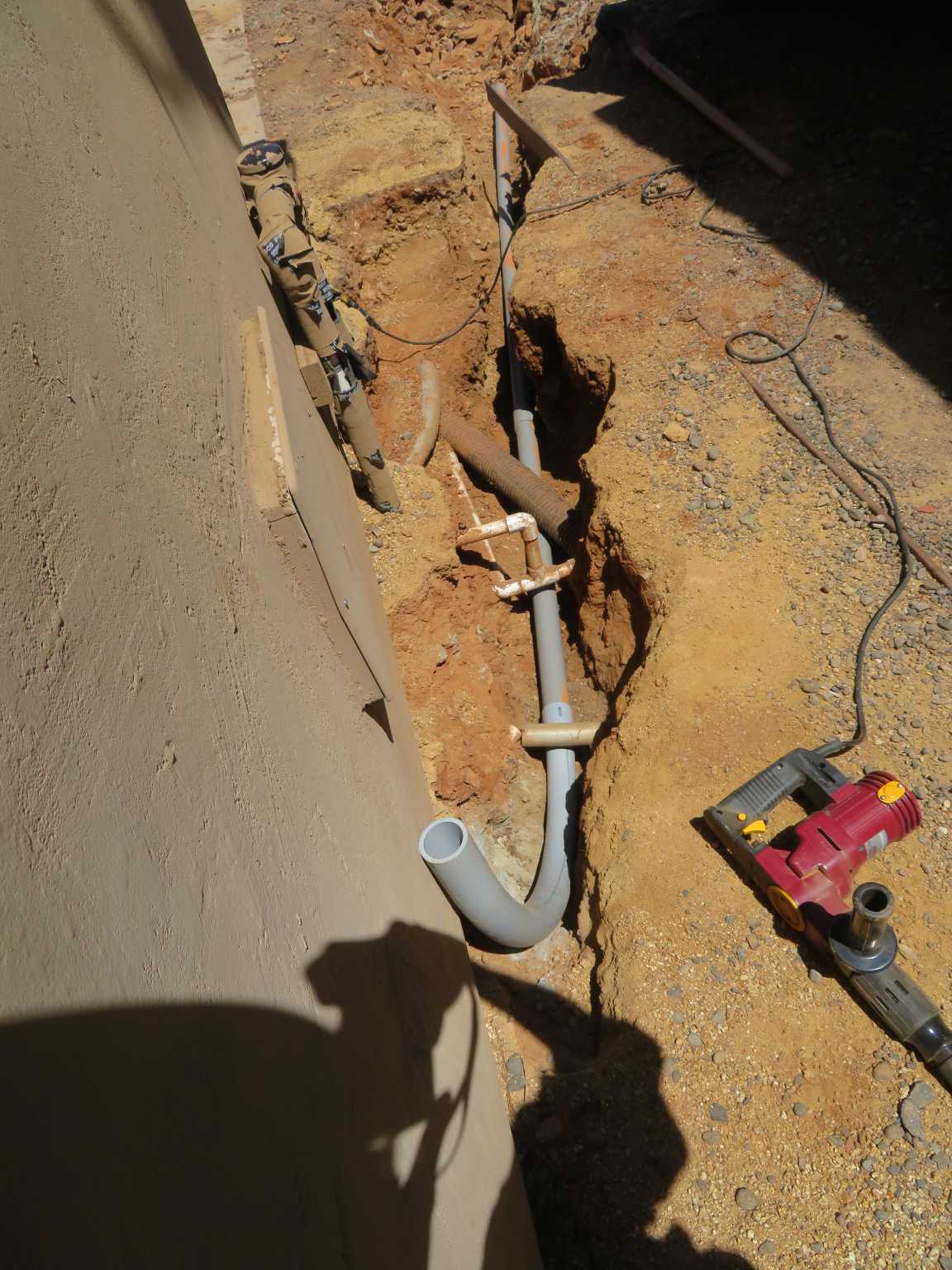 Finally got the electrical conduit test fit in the trench yesterday morning. The last bit of rock took a long time with the demo hammer, then more with it to break concrete away that had escaped the foundation forms. Now I just need to clear all the rock out in the rest of the trench, and lay in the conduit. Think I'll get an early start and take advantage of the cooler temps. Then siesta this afternoon.