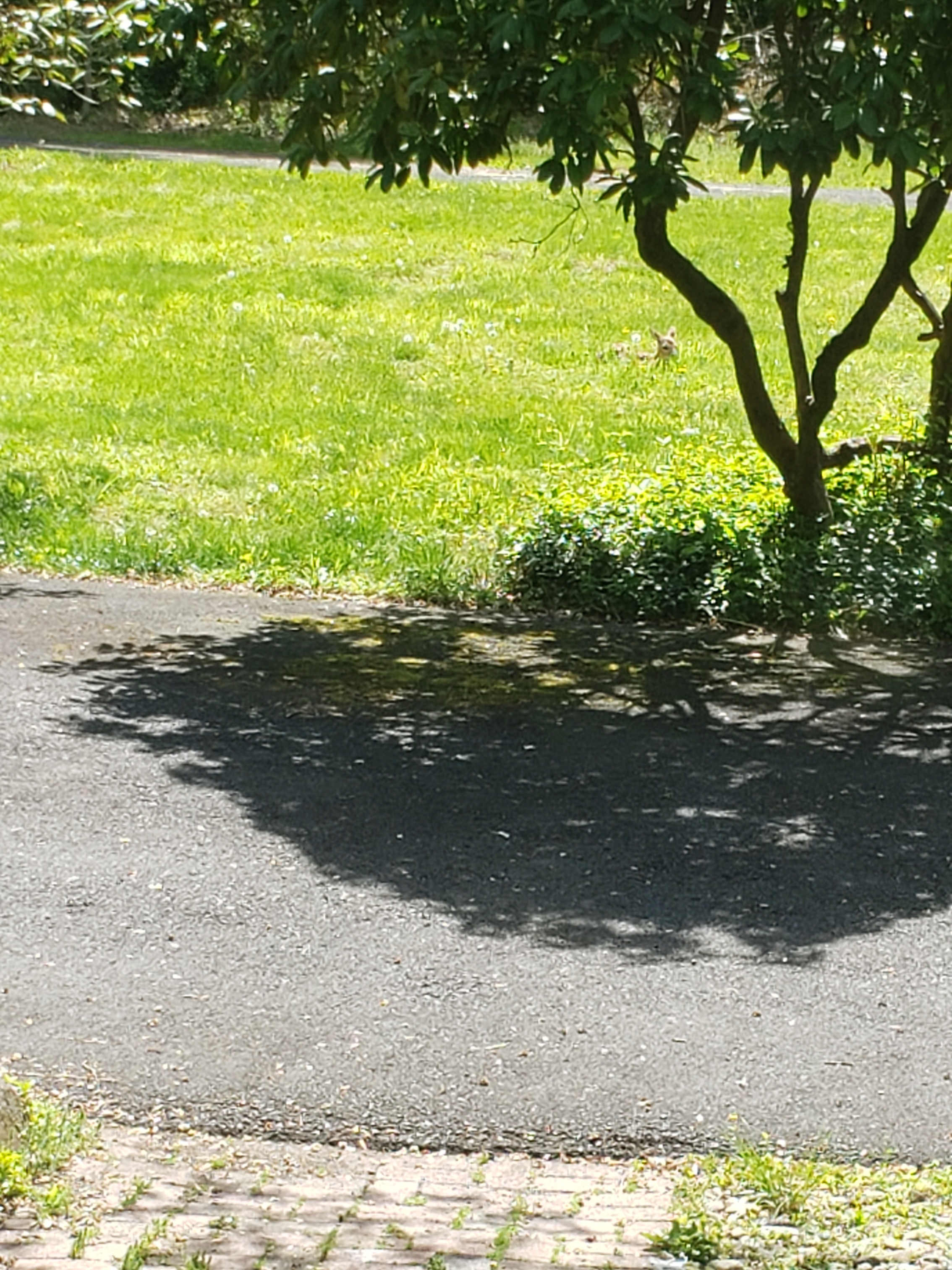 We had a new visitor, only 2 days old in our front lawn. See if you can spot our guest in the picture