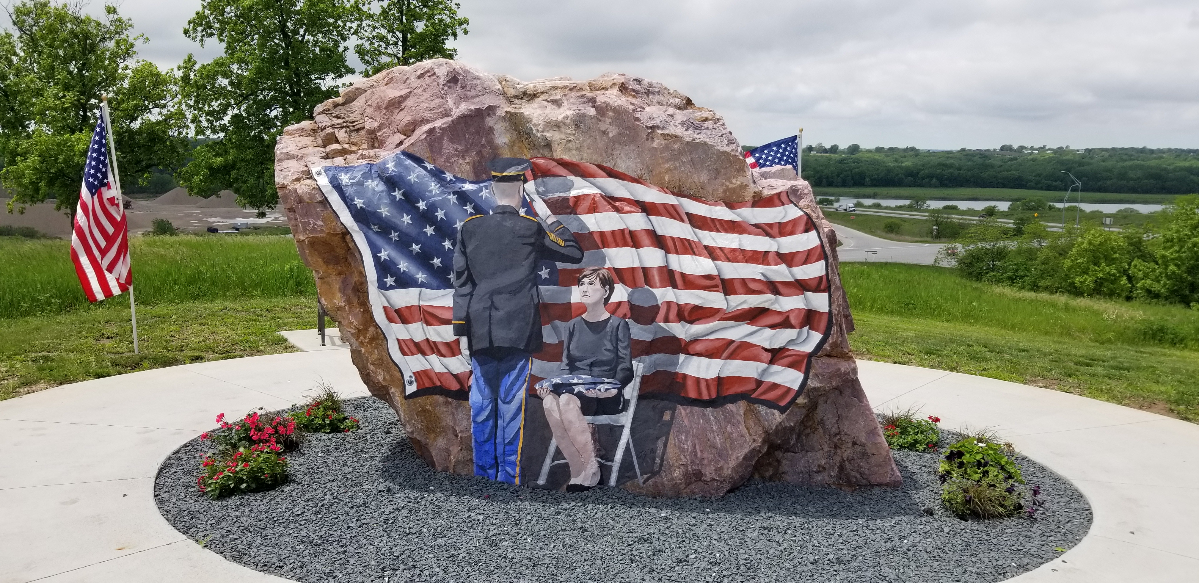This is the "Freedom Rock" at the Iowa Veterans Cemetary where my Mom and Dad are interred. The granite was donated by a local veteran, who owns a quarry and the great artwork .. by a gentlemen who's goal is to do one in every one of Iowa's 99 counties. I believe this is his 78th one and likely the largest.