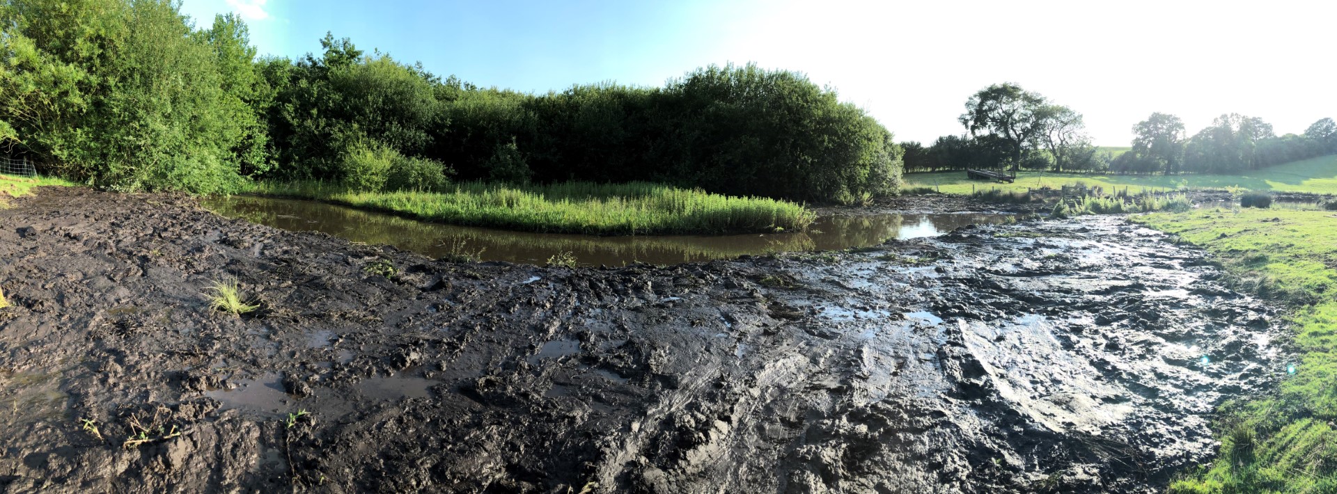 Very little wind yesterday left me at the mercy of the horse flies while in the bog and they showed none. Fortunately we are almost done, the digger ran fine and managed to extend the outlet channel to within a few feet of the railway boundary. A couple more hours today and it should all be finished.